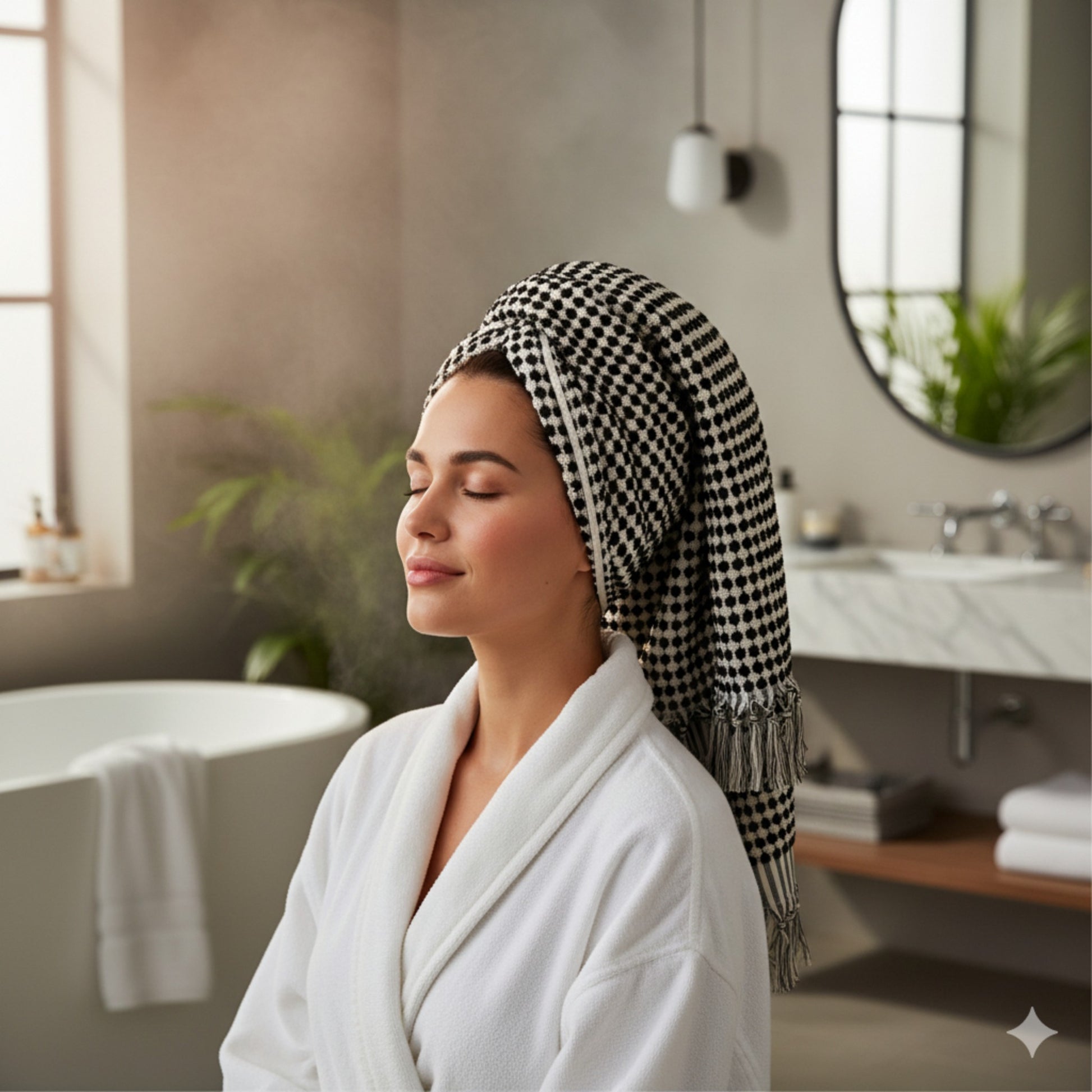 This gorgeous Turkish Hammam Terry Hand Towels Black Dotted is large, hygienic, environmentally friendly, and free from harmful chemicals. Because of that, it is also a perfect towel for kids.