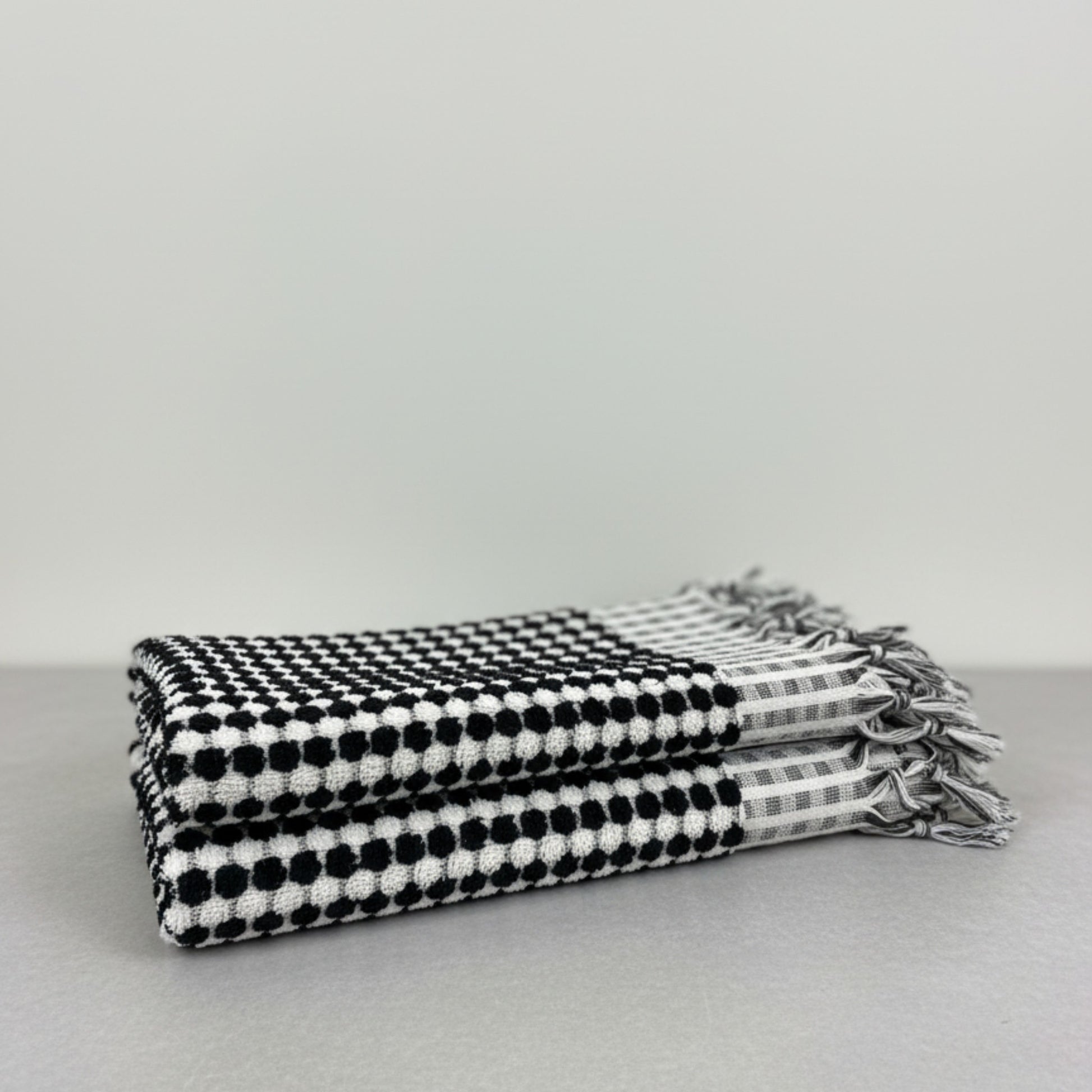 Turkish Hammam Bath Terry Hand Towels – Black White Dotted