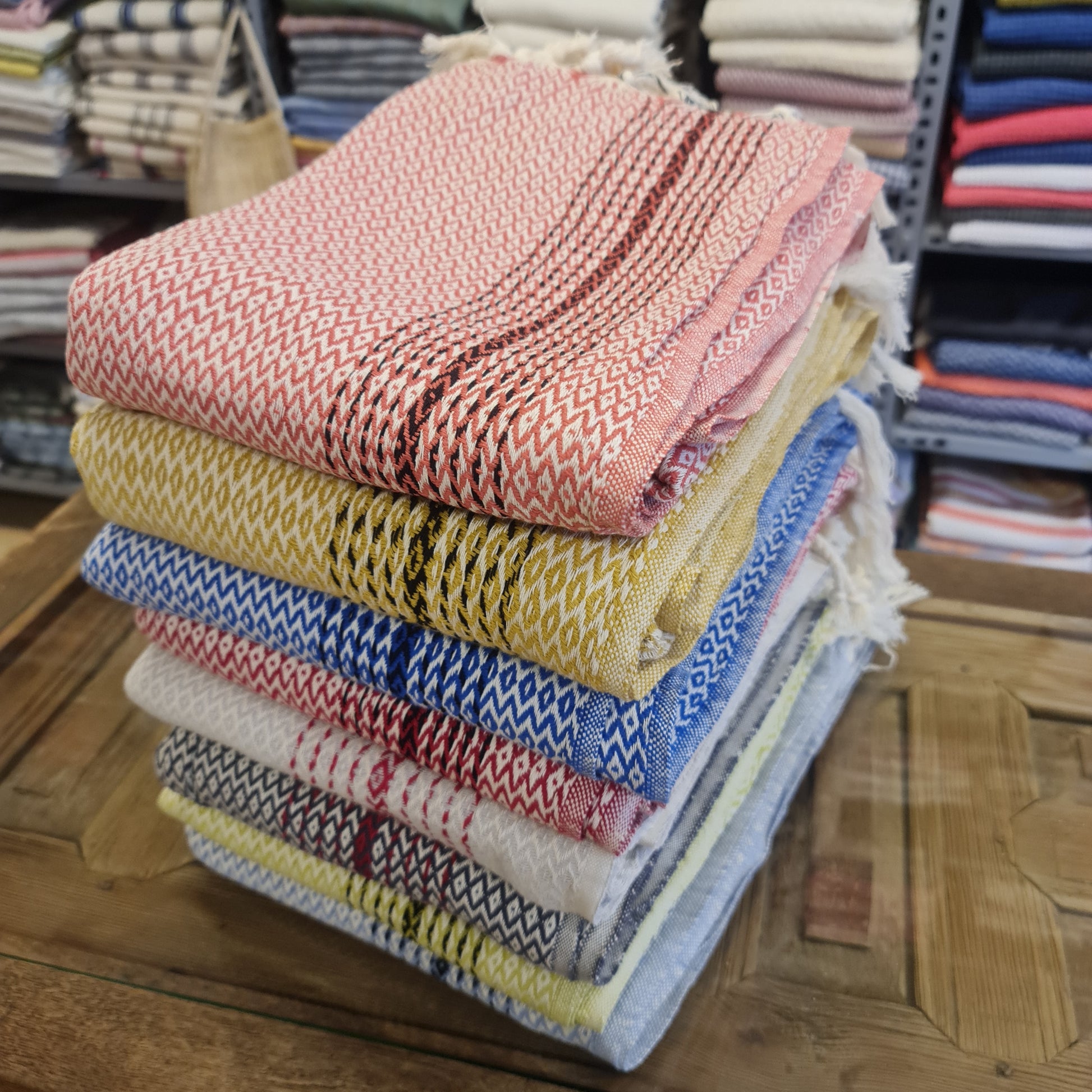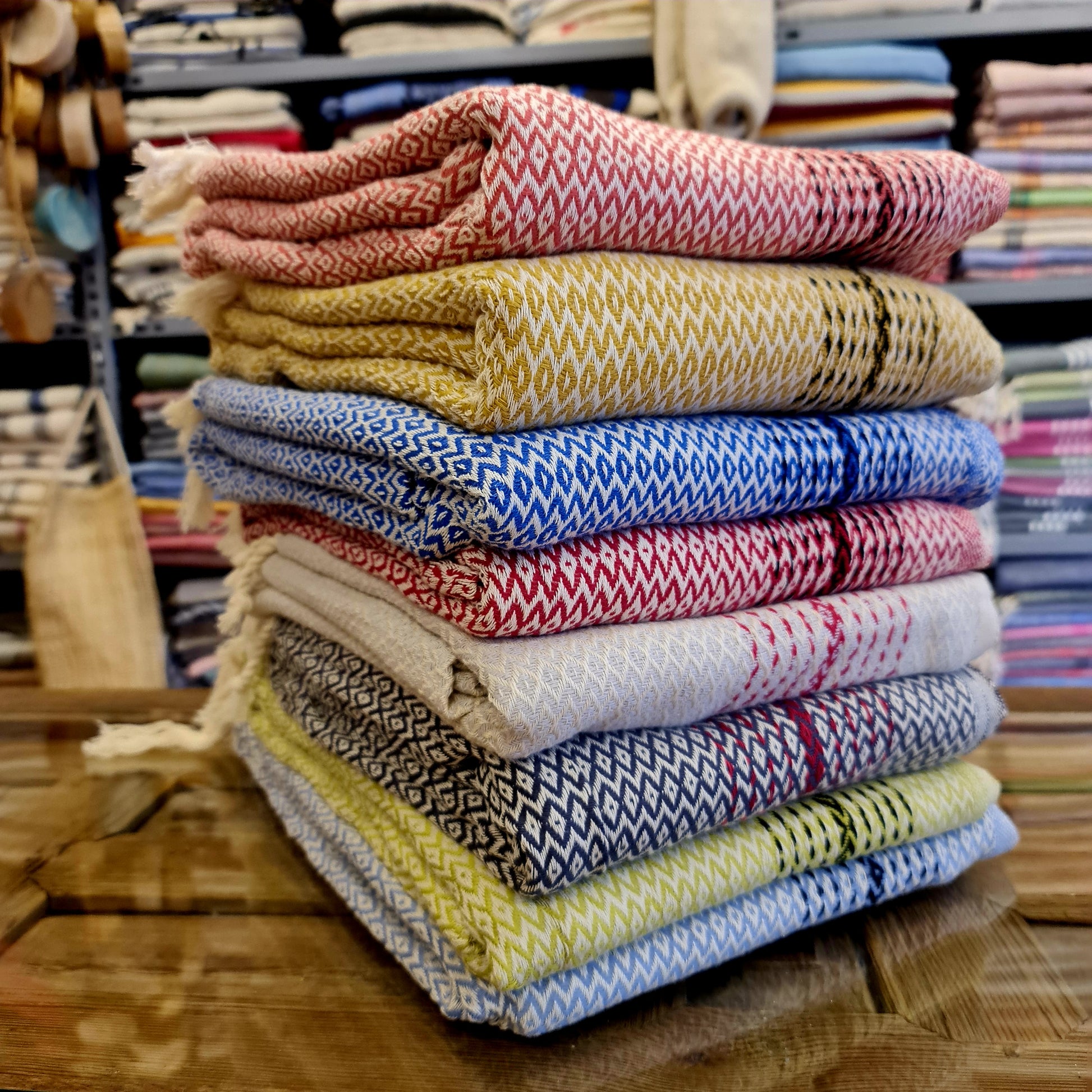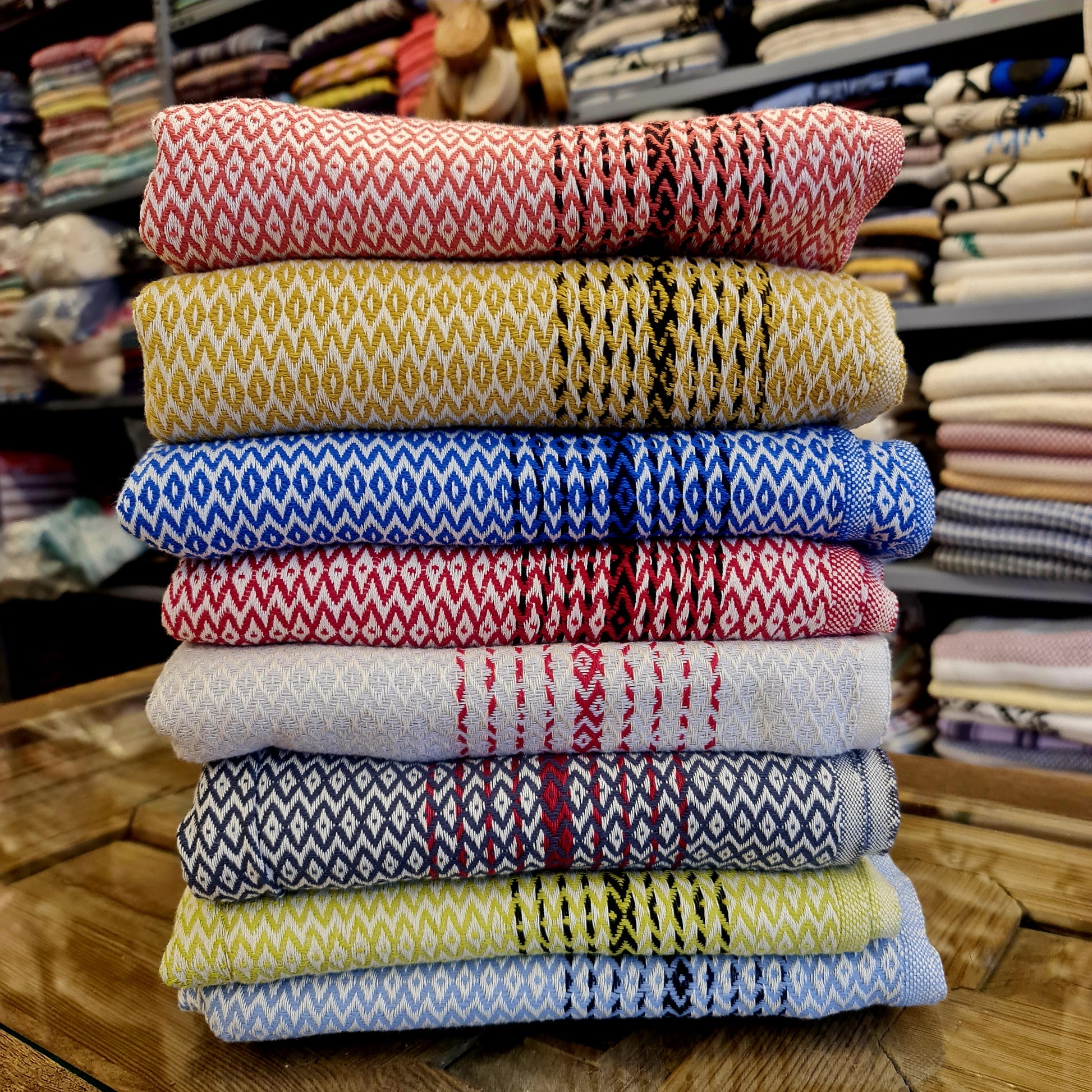 They are made of 100% premium quality natural Turkish Cotton. Diamond Design Natural Cotton Turkish Towel Pestemal looms with traditional hand weaving methods of Anatolia one by one. Sustainable materials are used during the dying process.