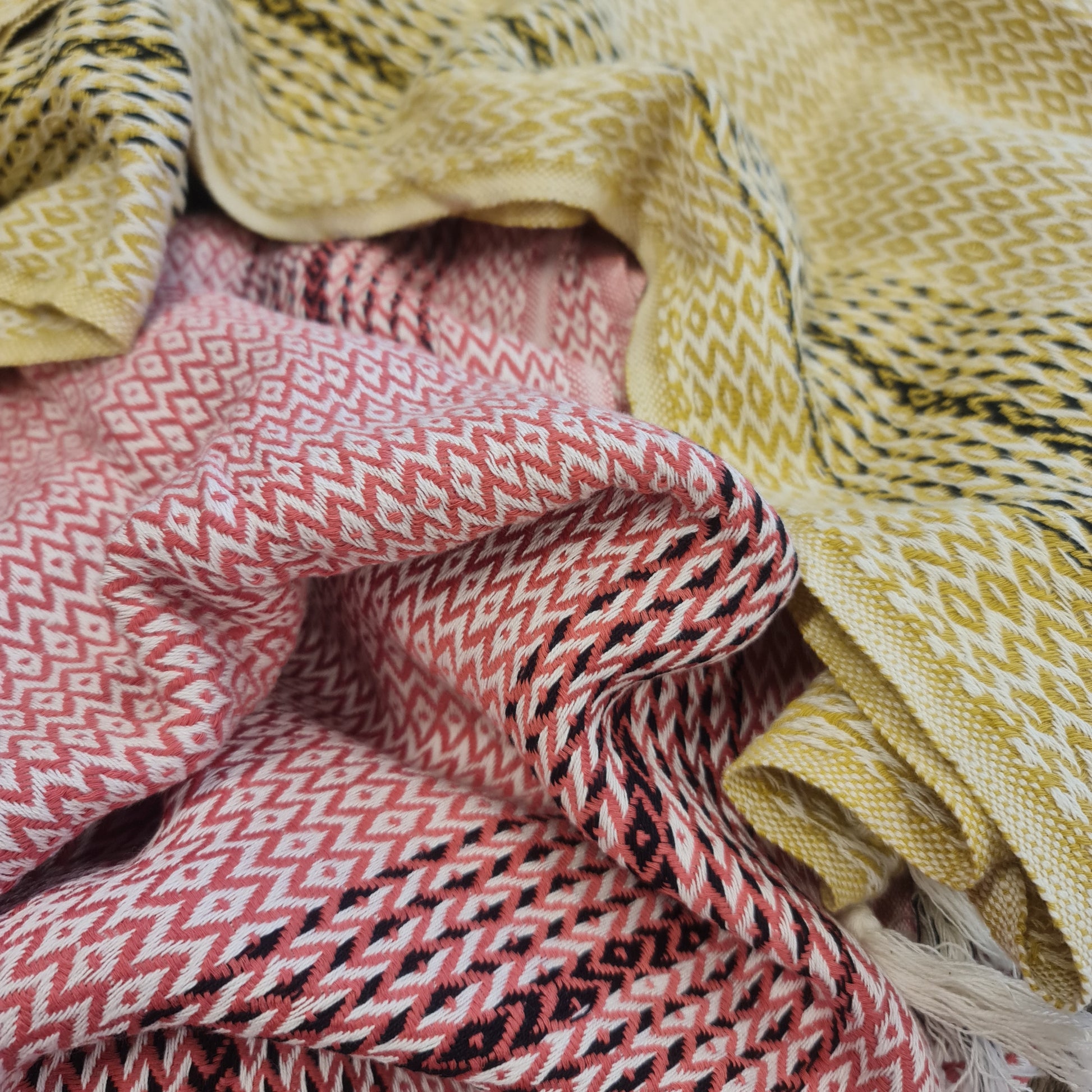 Diamond Design Natural Cotton Turkish Towel Pestemal is our new exclusive collection. These gorgeous super soft pestemal towels are made with so much love and passion individually. Hand-dyed making each one special and unique. Each towel will vary slightly. Hand-knotted tassels make them so special.