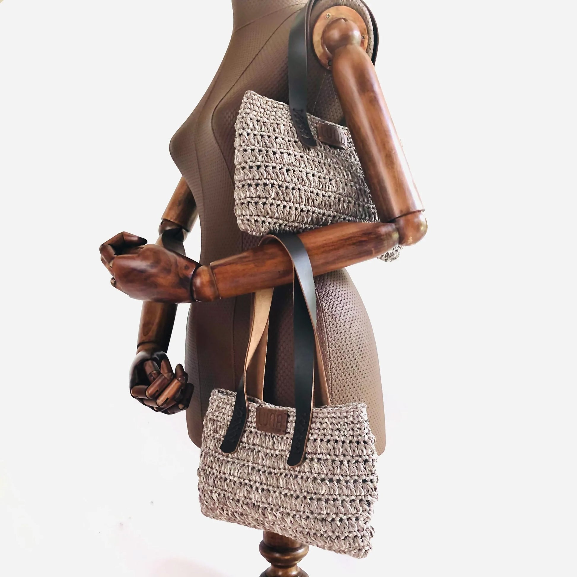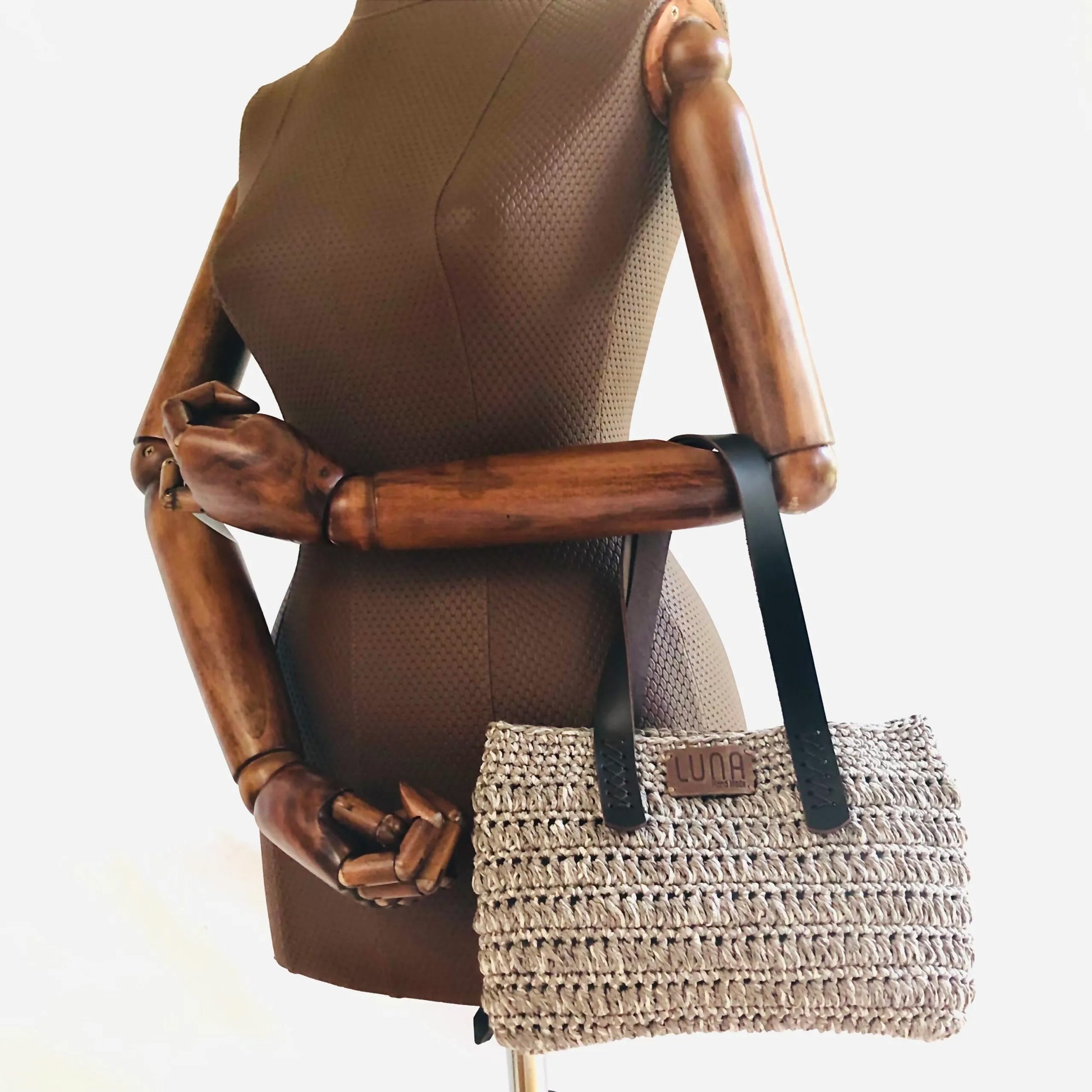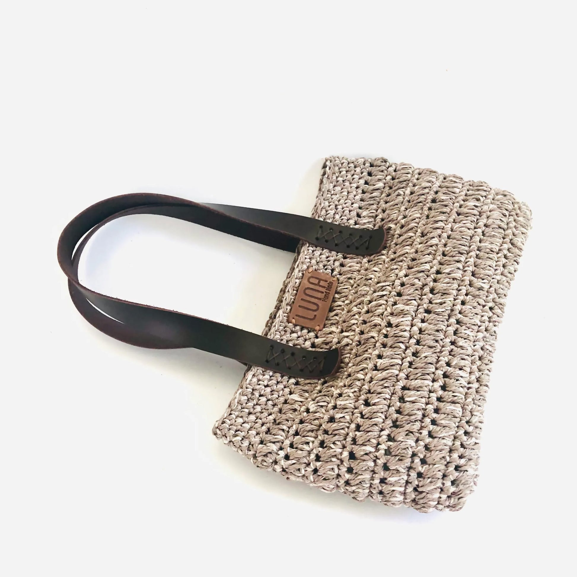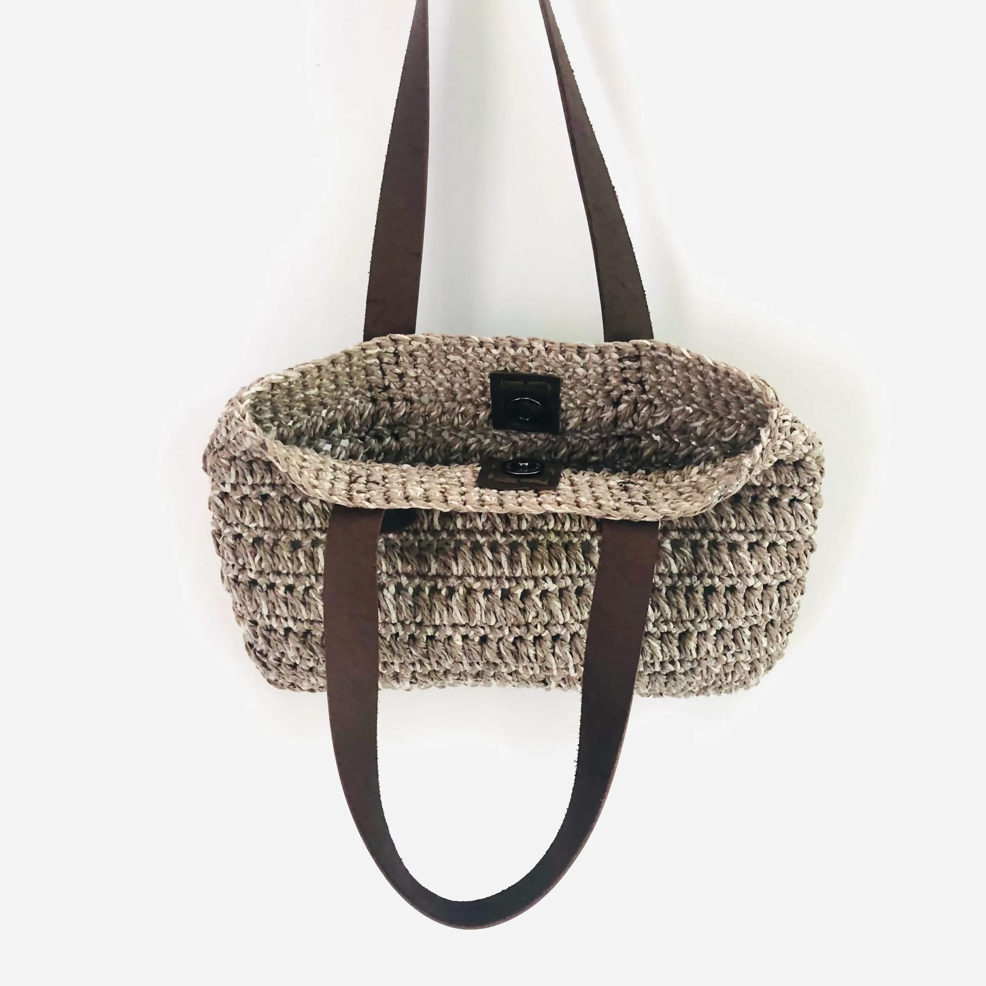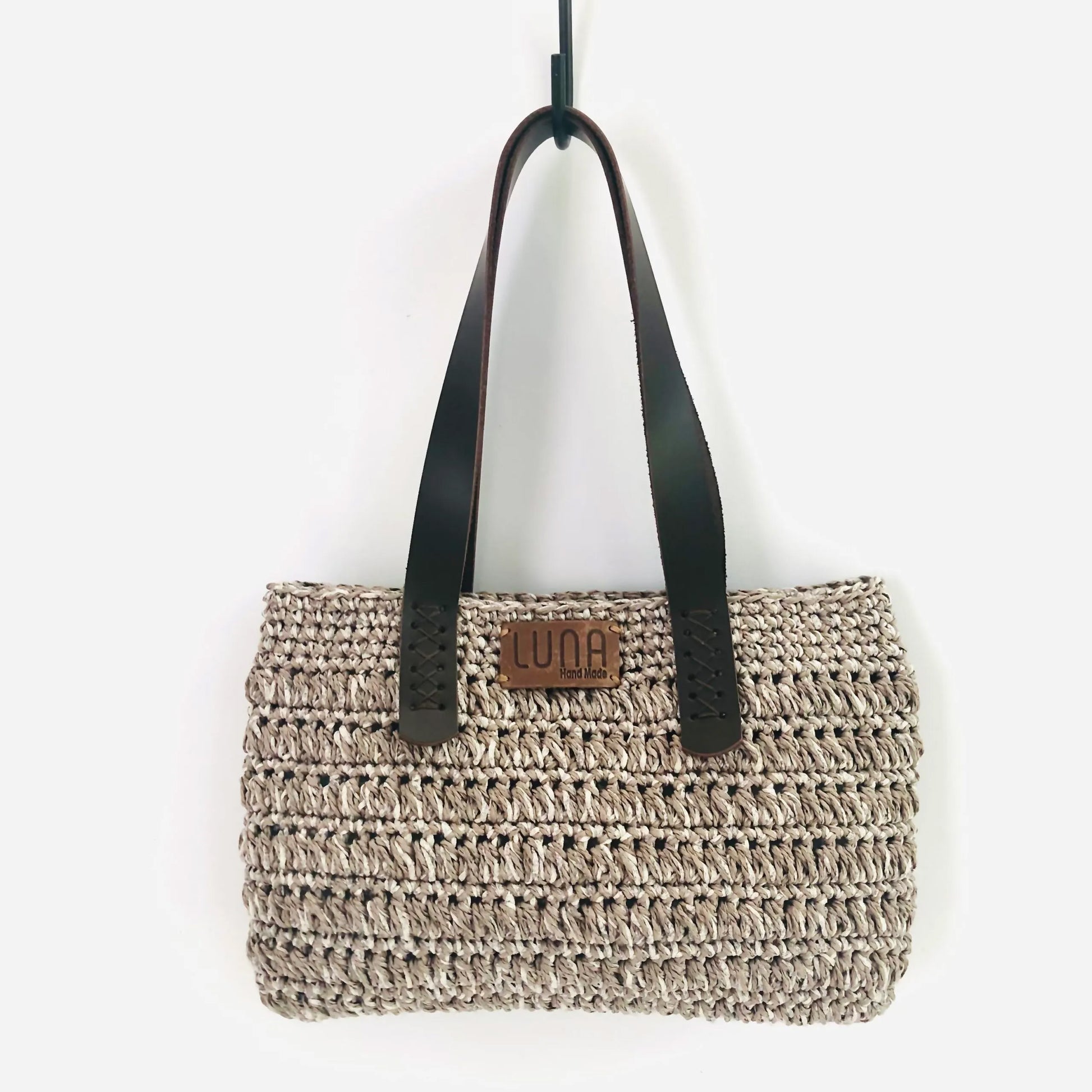 The Hand-Made Hand Knitted Hand Bag has genuine leather straps.