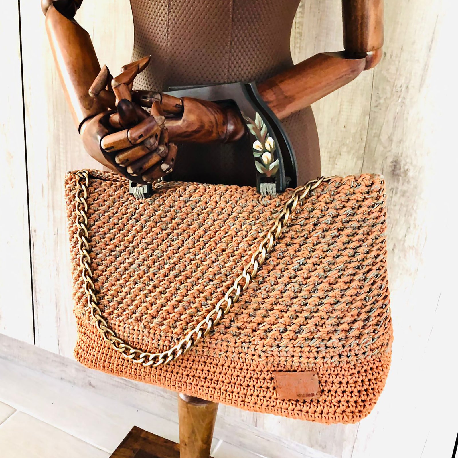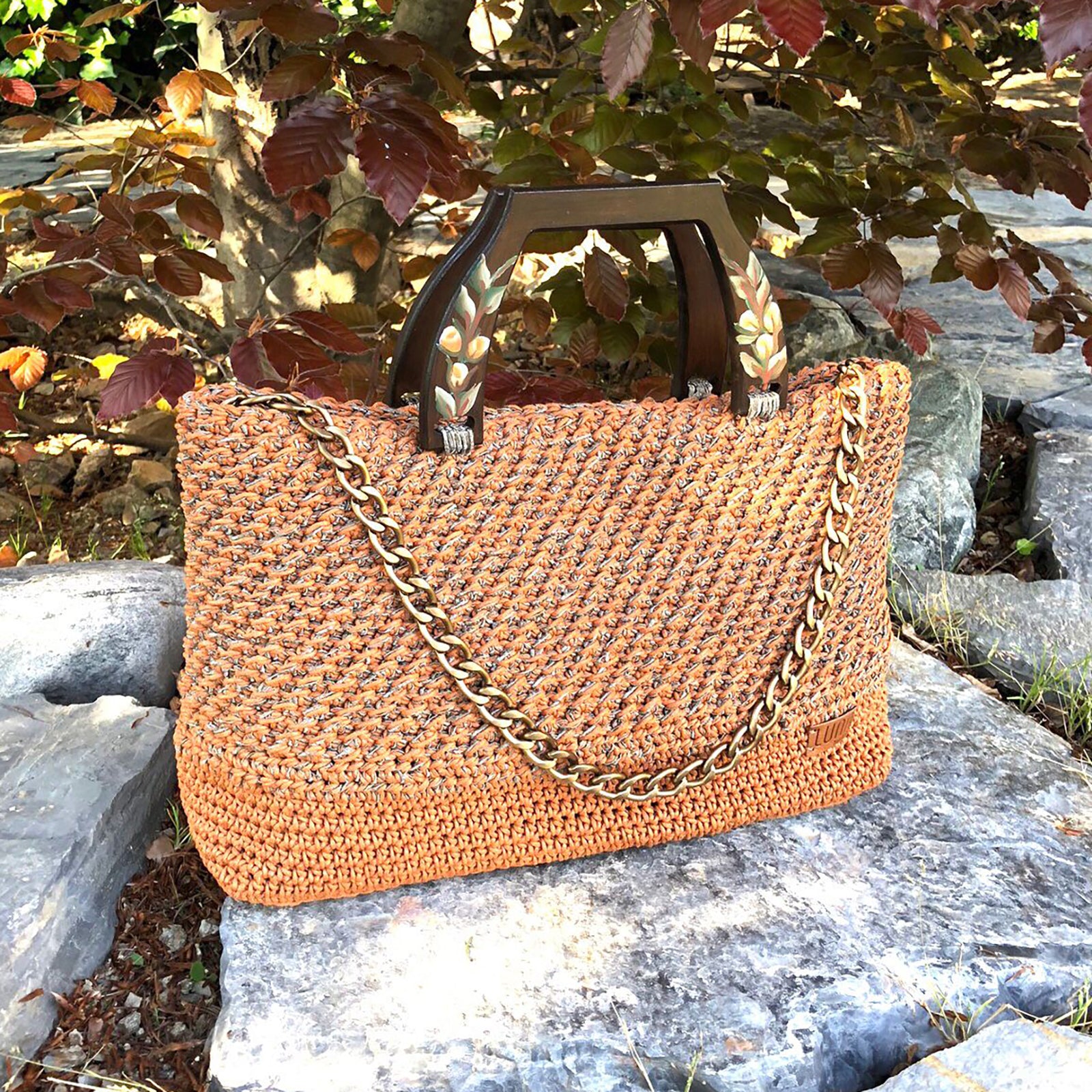 This lovely Hand-Made Hand Knitted Hand Bag With Painted Handles has a one-of-a-kind design that will follow you every night and day.