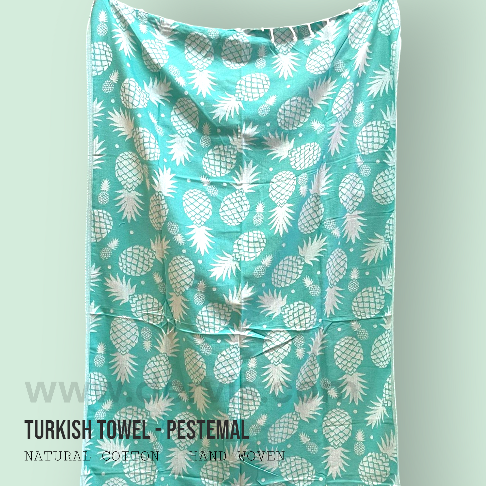 With our Pineapple Design Turkish Towel, discover the fusion of modern style with history. This towel promises to add a bit of elegance and history to your routine whether you're lounging in a fancy bath or having a day at the beach.