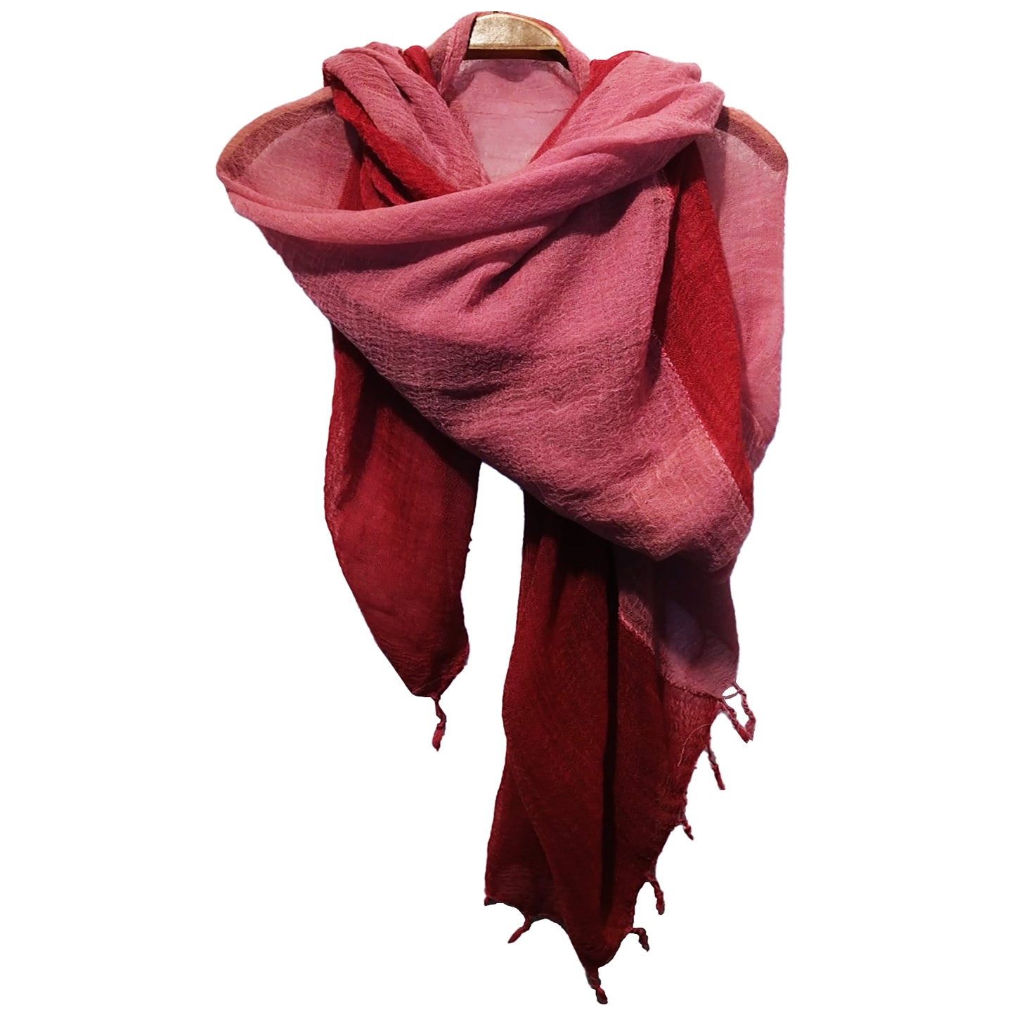 Hand Woven Wool Double Scarf Red Pink is made of pure natural wool.