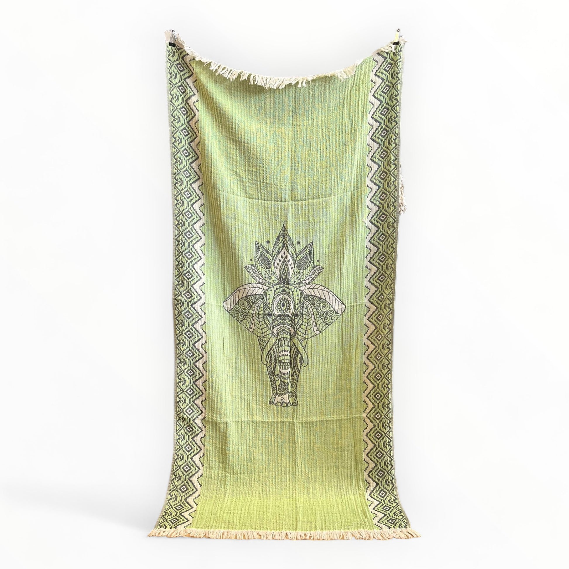 🌿 Introducing our Hand-Woven Three Layers Natural Cotton Turkish Towel Pestemal with Elephant Design 🌿