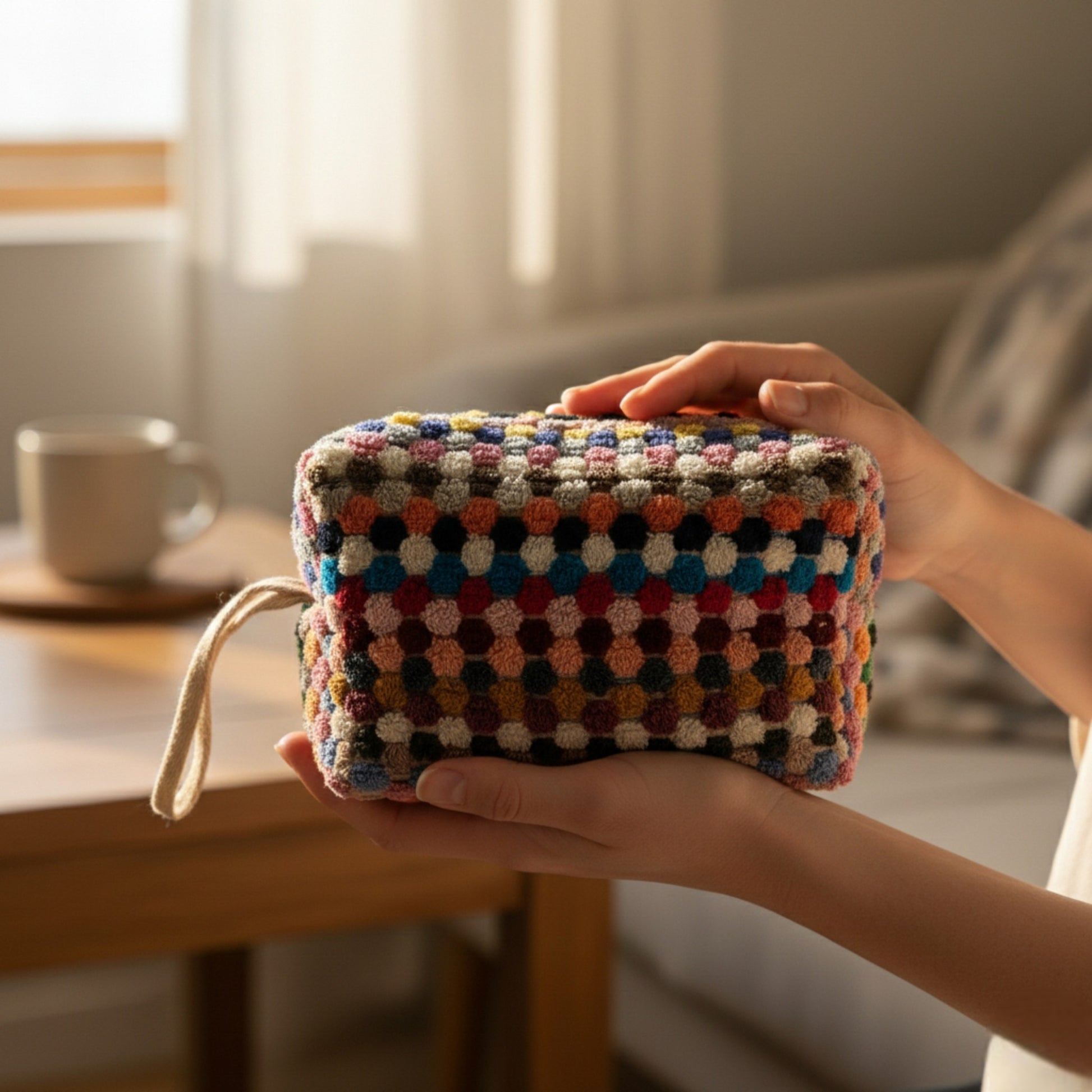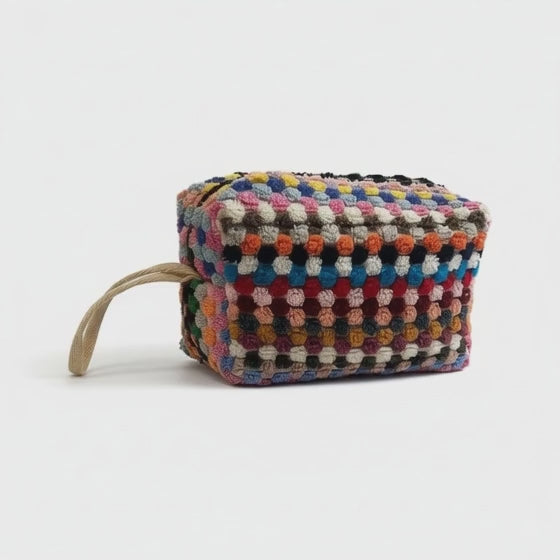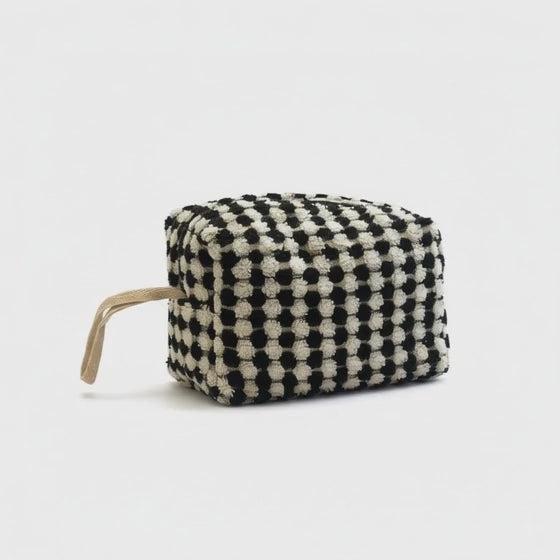 A soft, handmade makeup pouch crafted from authentic Turkish terry towel with our signature dotted texture.