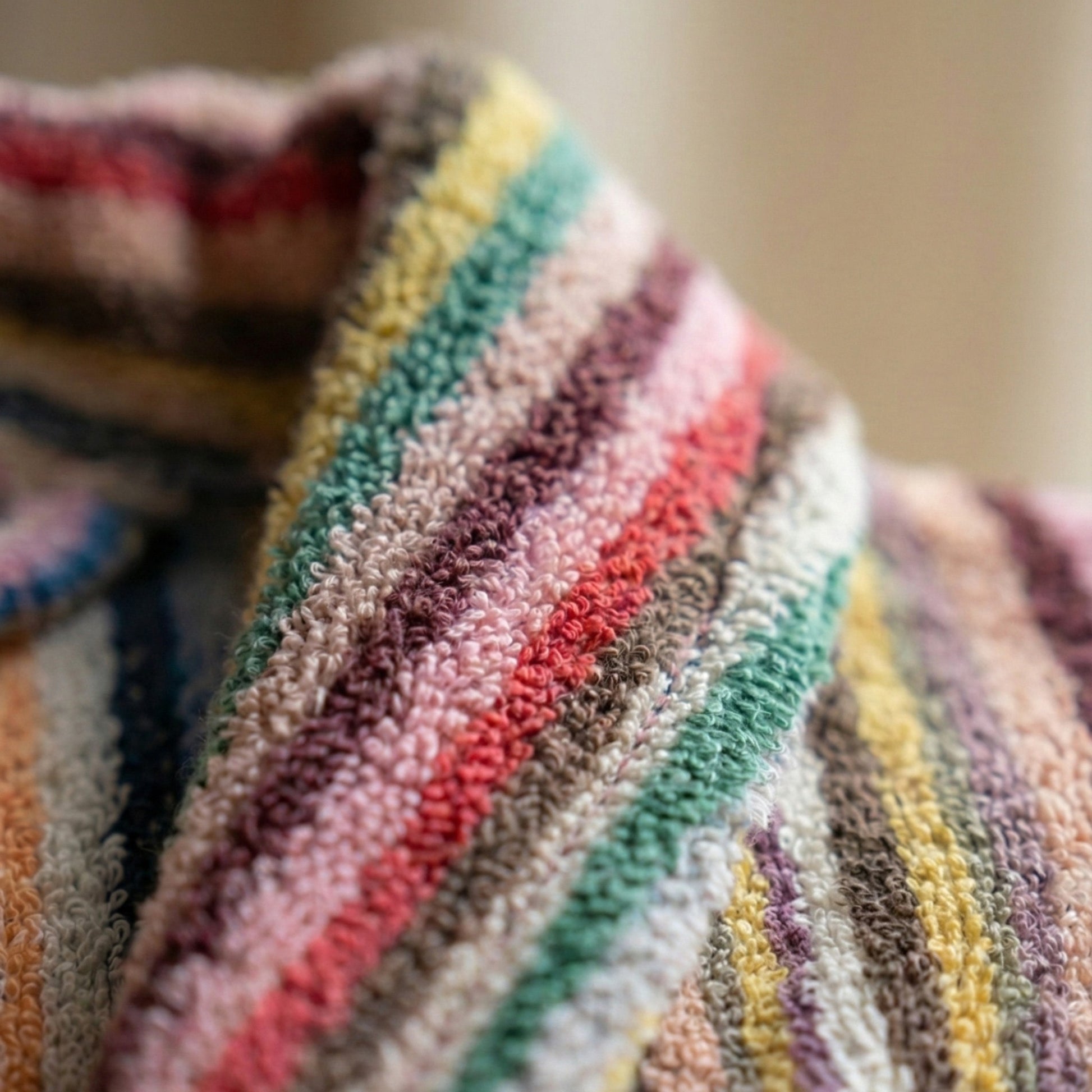 Handwoven Turkish Terry Bathrobe — Multi Color Stripe Design Shawl Collar