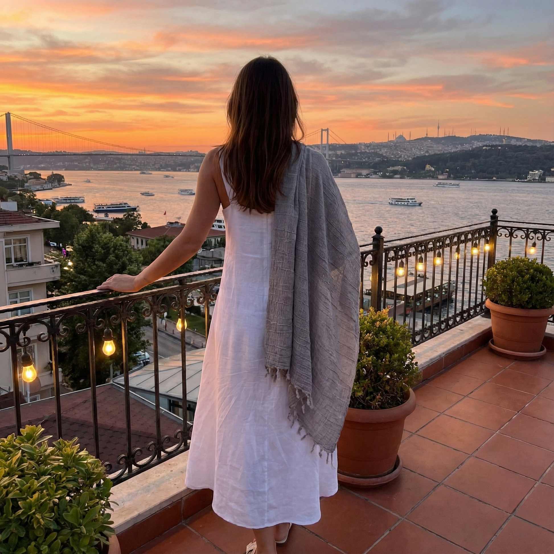 The Fine Şekerpare Scarf is made from 100% pure wool, carefully handwoven and hand-dyed one by one by skilled artisans.