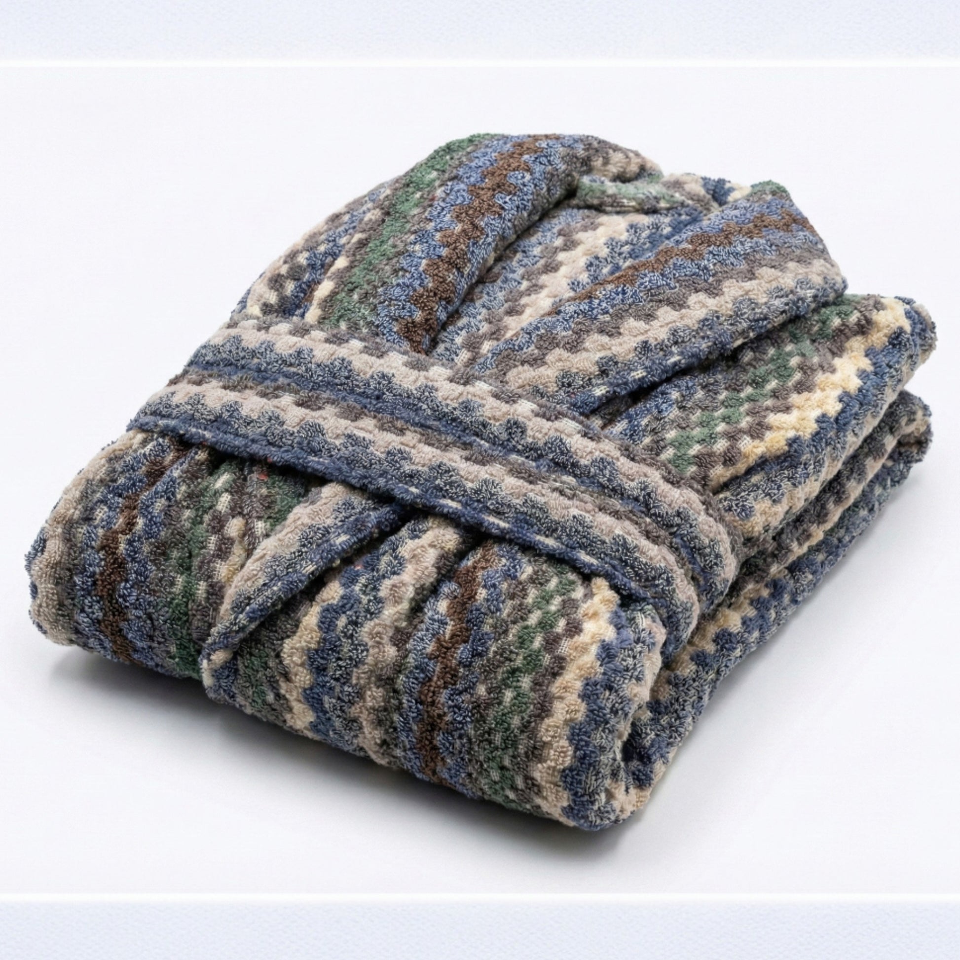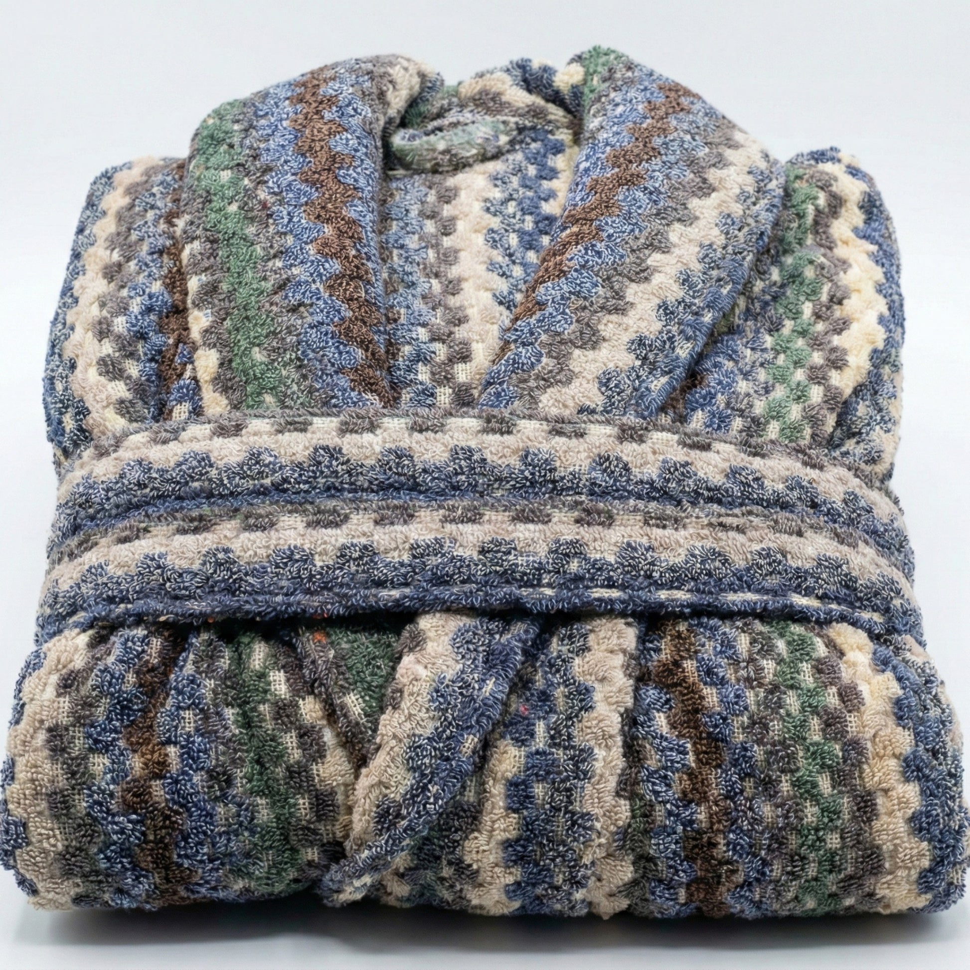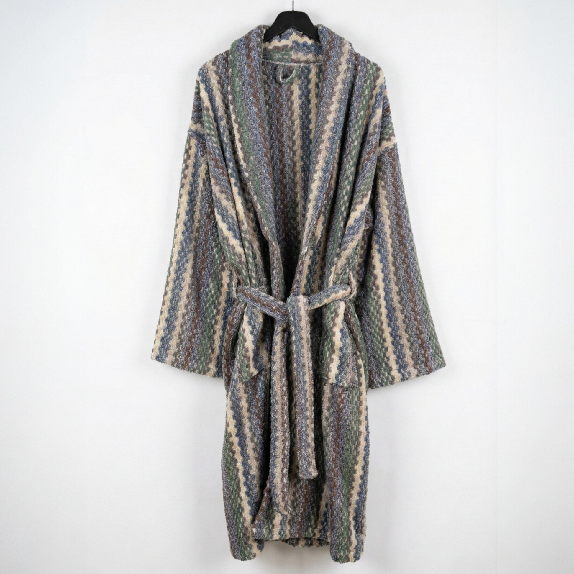 Handwoven Turkish Terry Towel Men’s Bathrobe – Zigzag Pattern (L/XL)