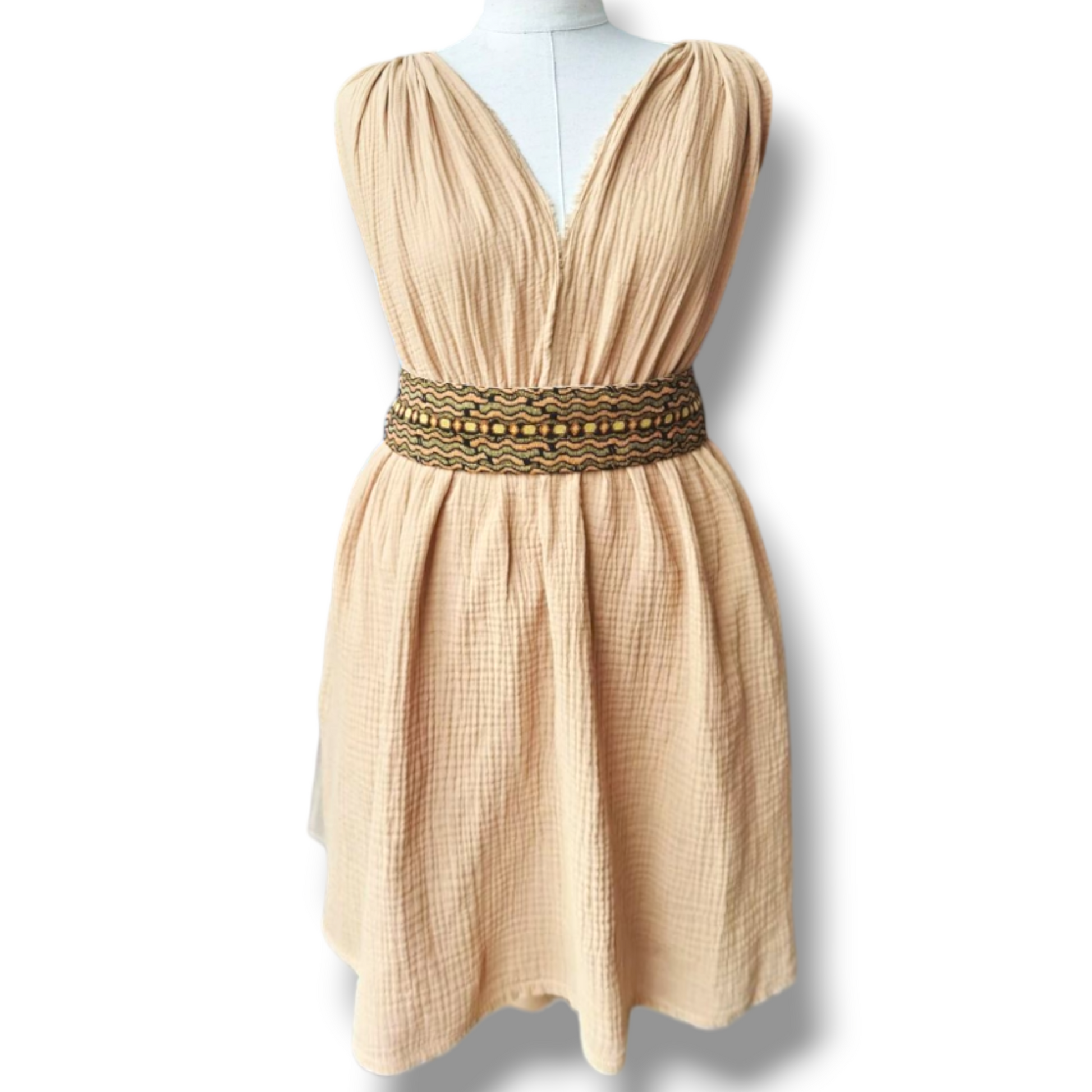 Hellenic Style Hand-Made Dress is made of Hand-Woven Natural Cotton Yarn.