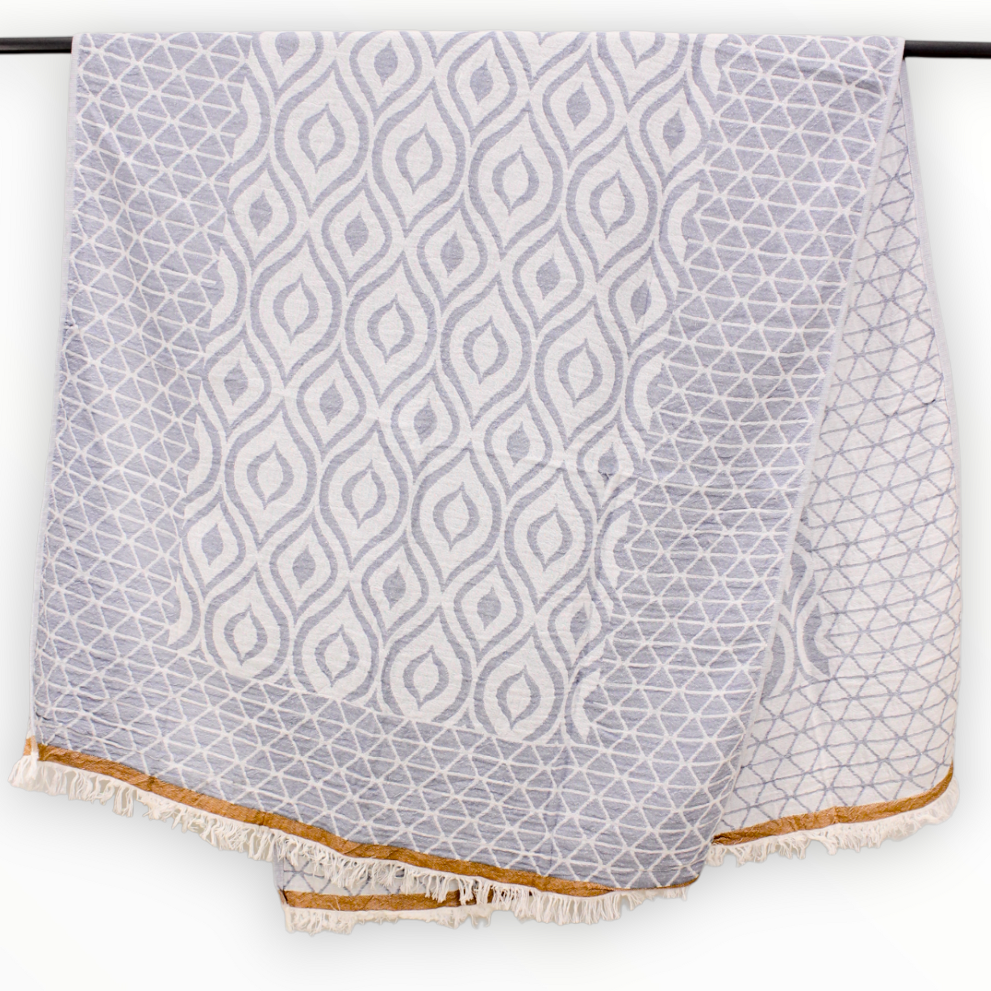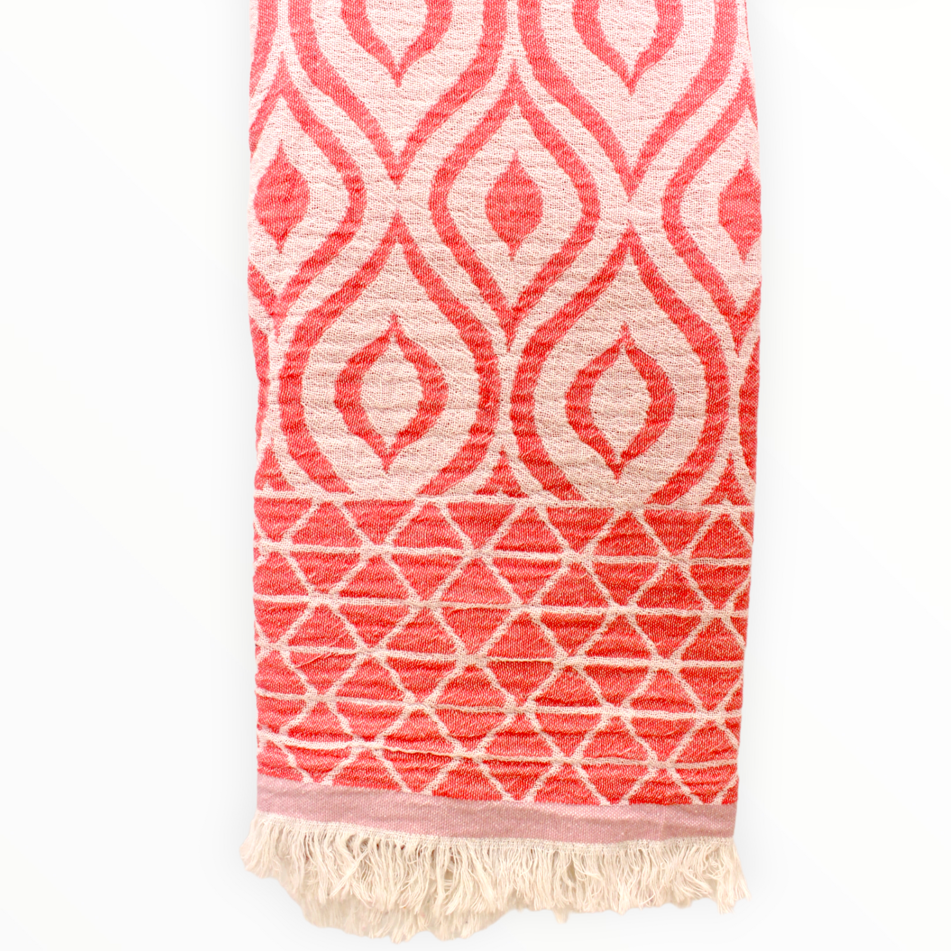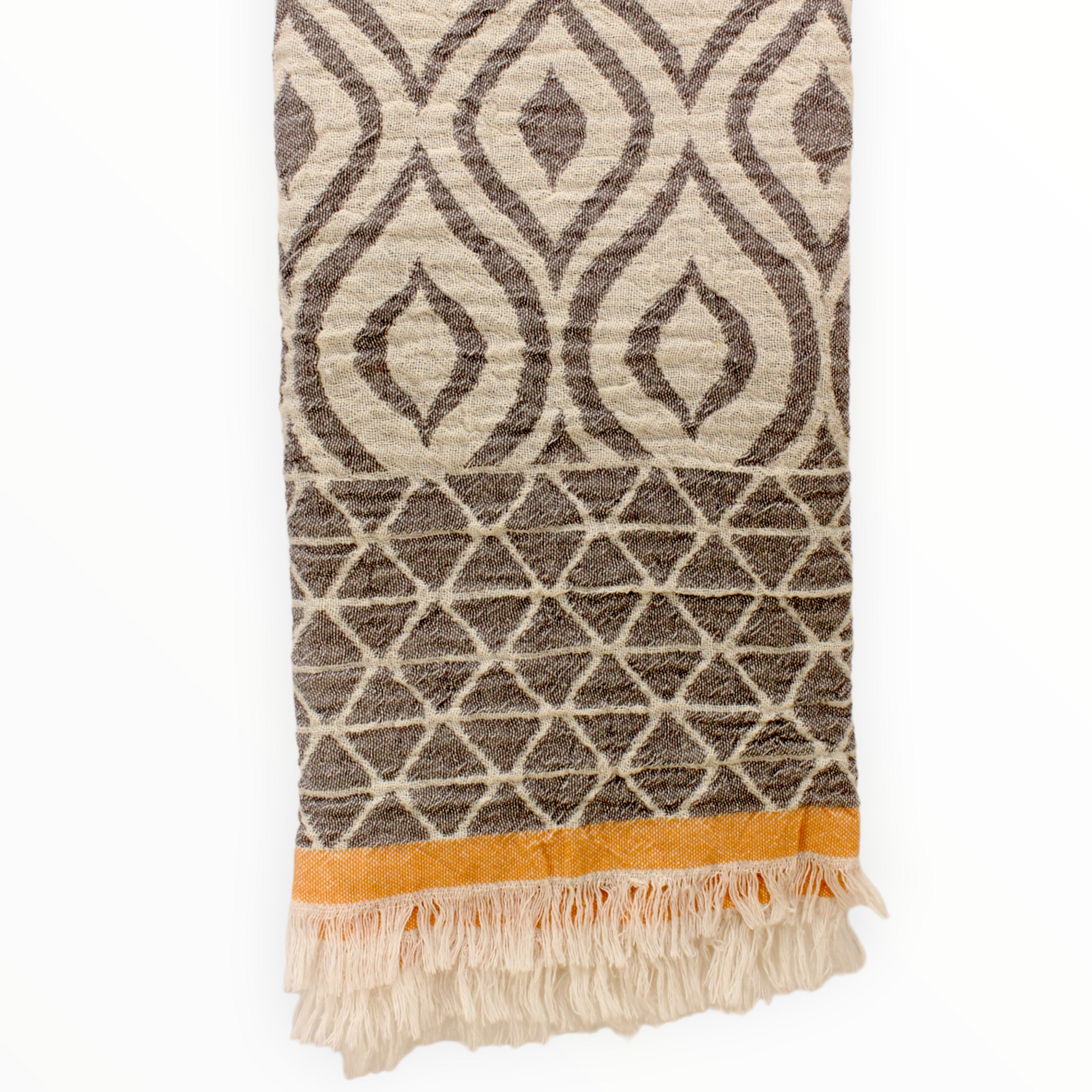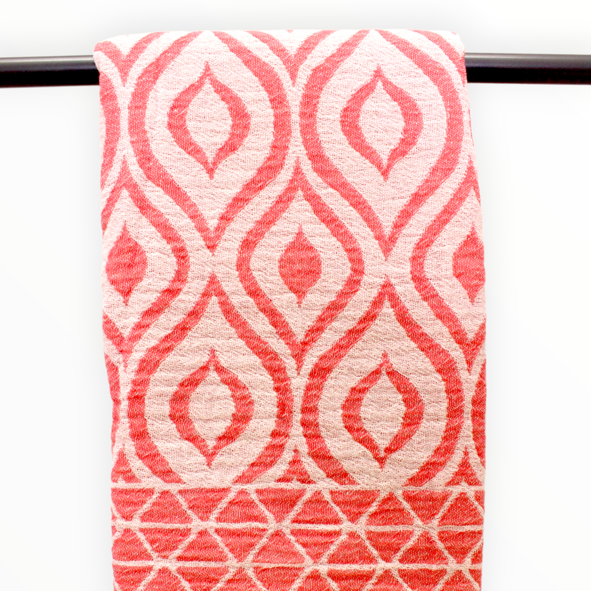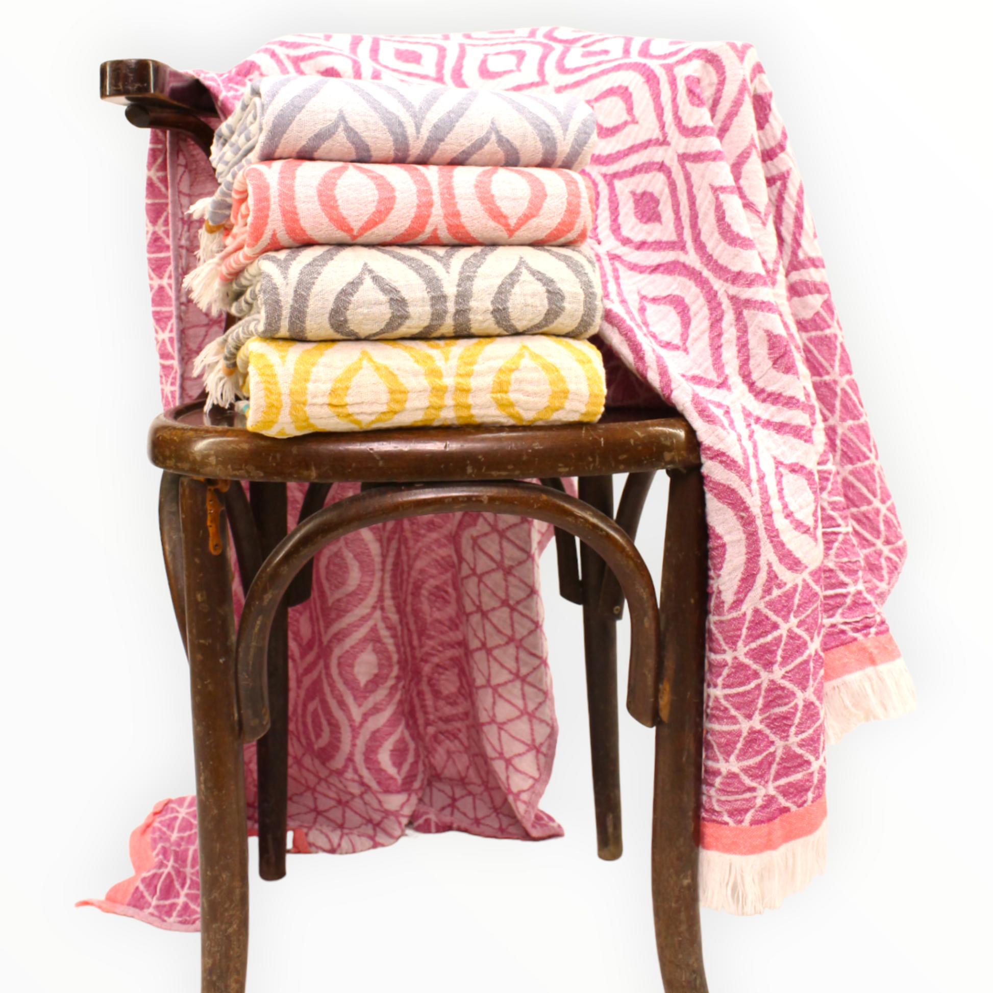 A multipurpose traditional flat-woven Ikat Design Turkish Towel Pestemal Peshtemal, Beach Towel has its origins in the Hamam – a traditional Ottoman public bath in Turkey. They are famous for their absorbency and hygienic soft texture.