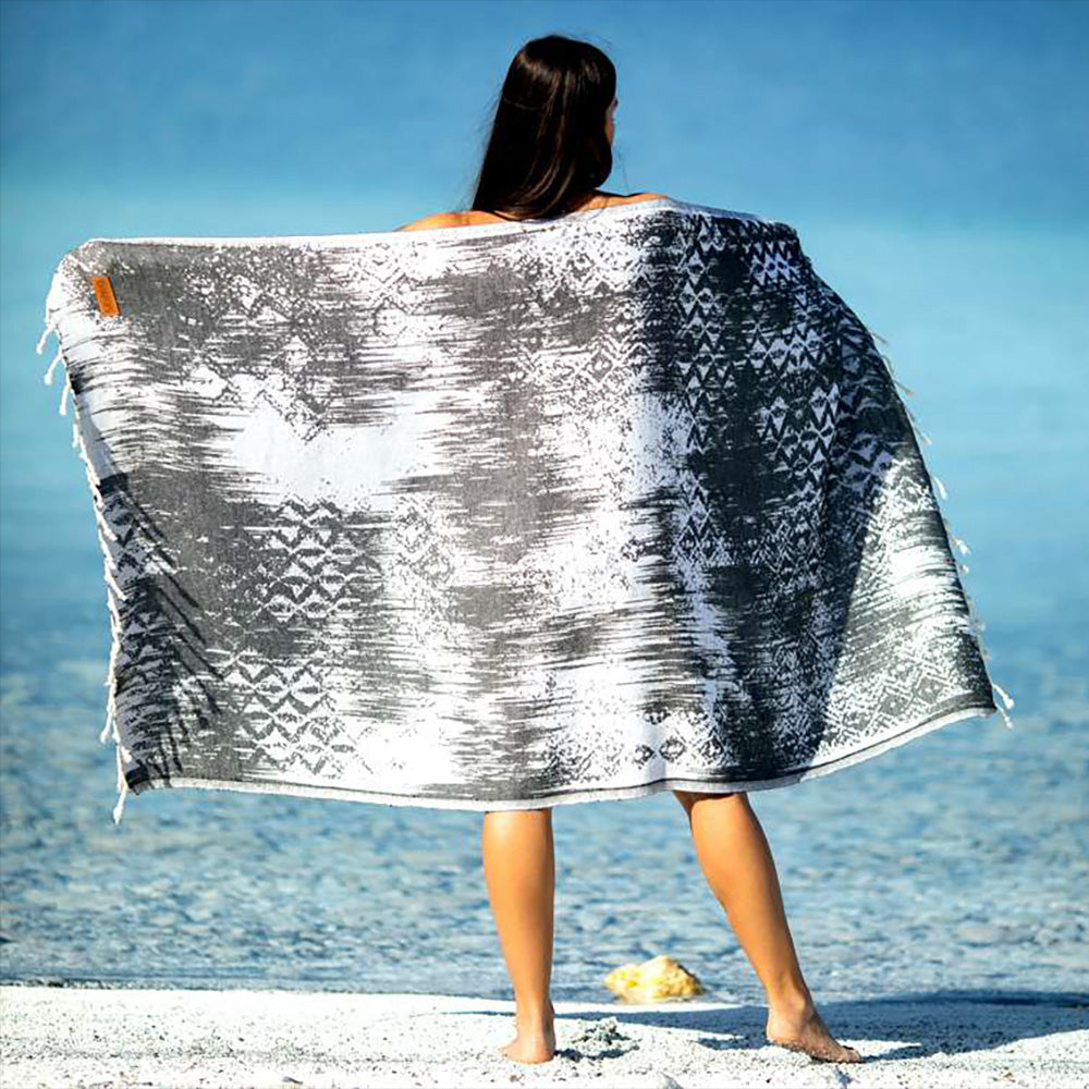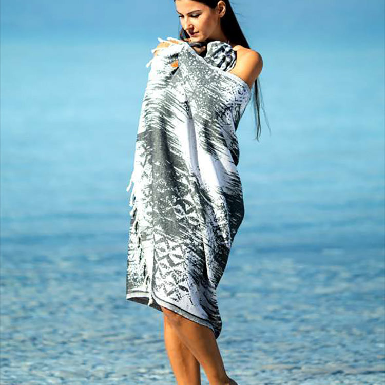 These highly absorbent Jacquard Design Natural Cotton Turkish Towel Pestemal Grey dry quickly and are naturally sand resistant.