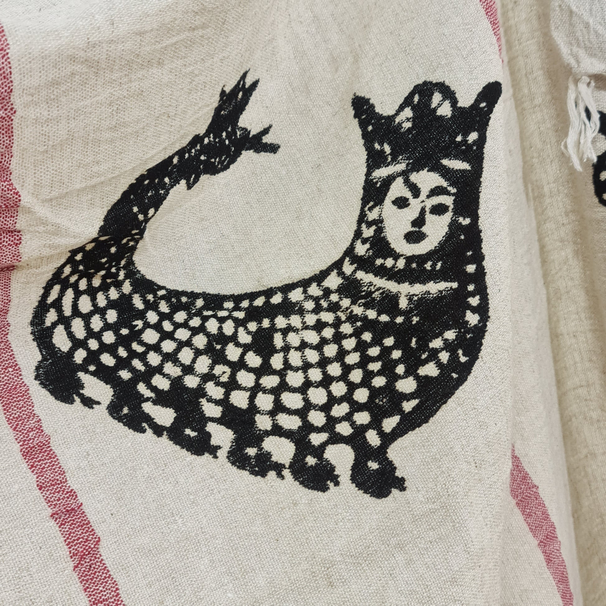 Linen Turkish Towel Pestemal Shahmaran Pattern