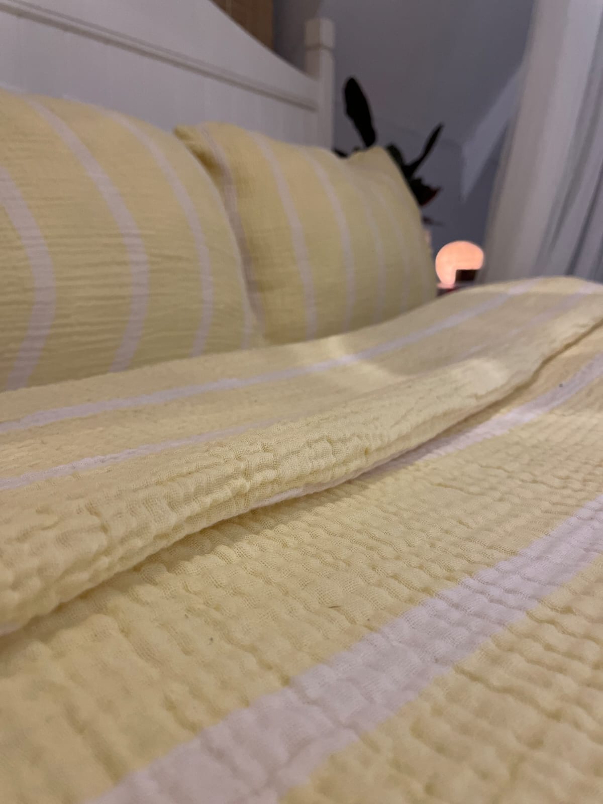 Muslin Natural Cotton Blanket Pillow Set Stripe Gauze Blanket for Adult is made of Premium Quality Finest Turkish Cotton.
