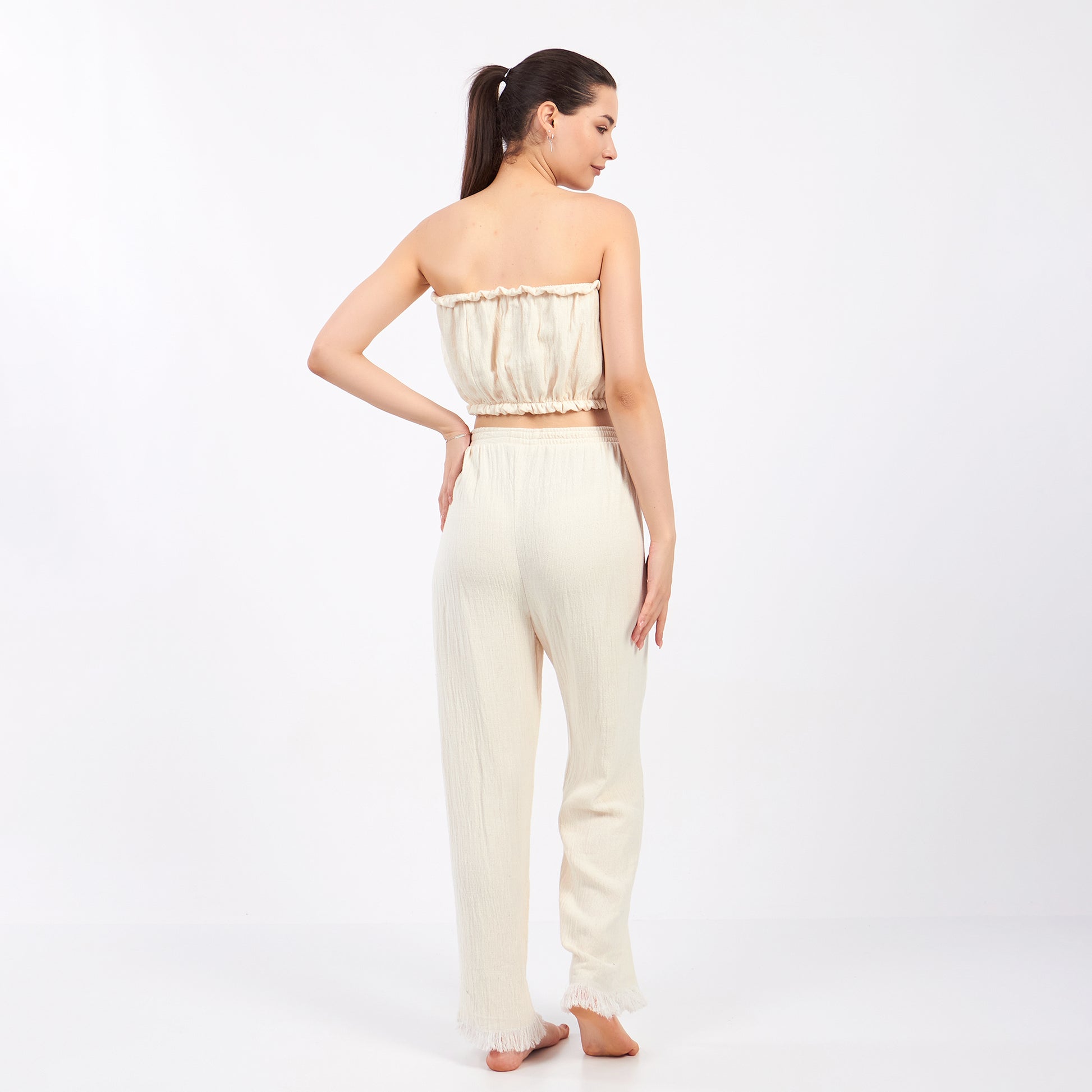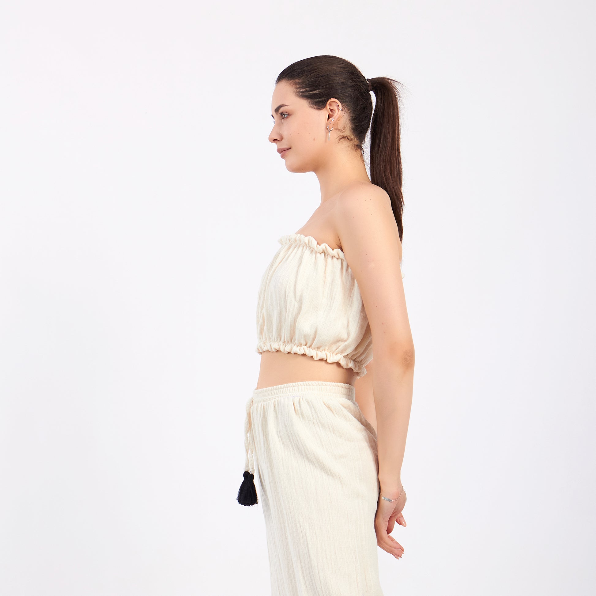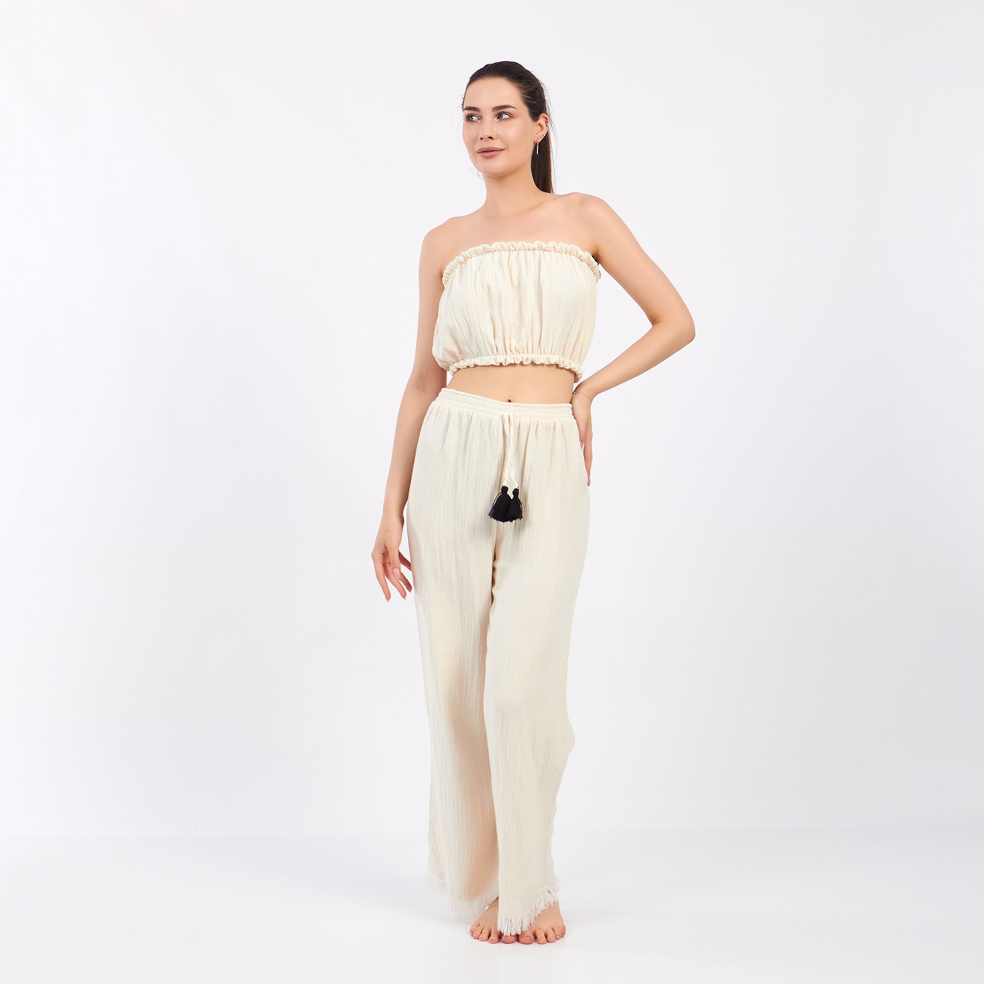 Natural Cotton Bustier Blouse Pants Set is made by legendary traditional Anatolian hand-woven technique.