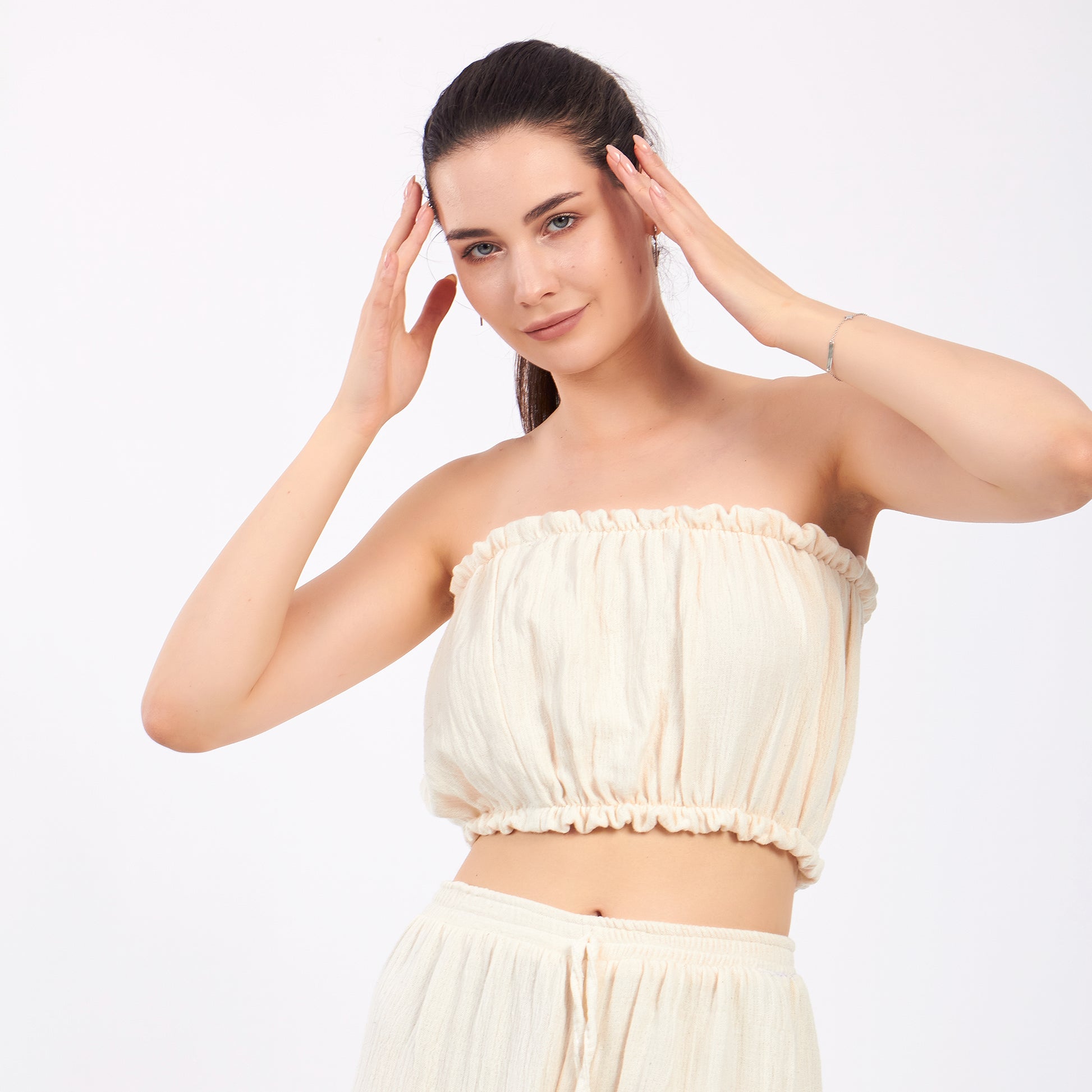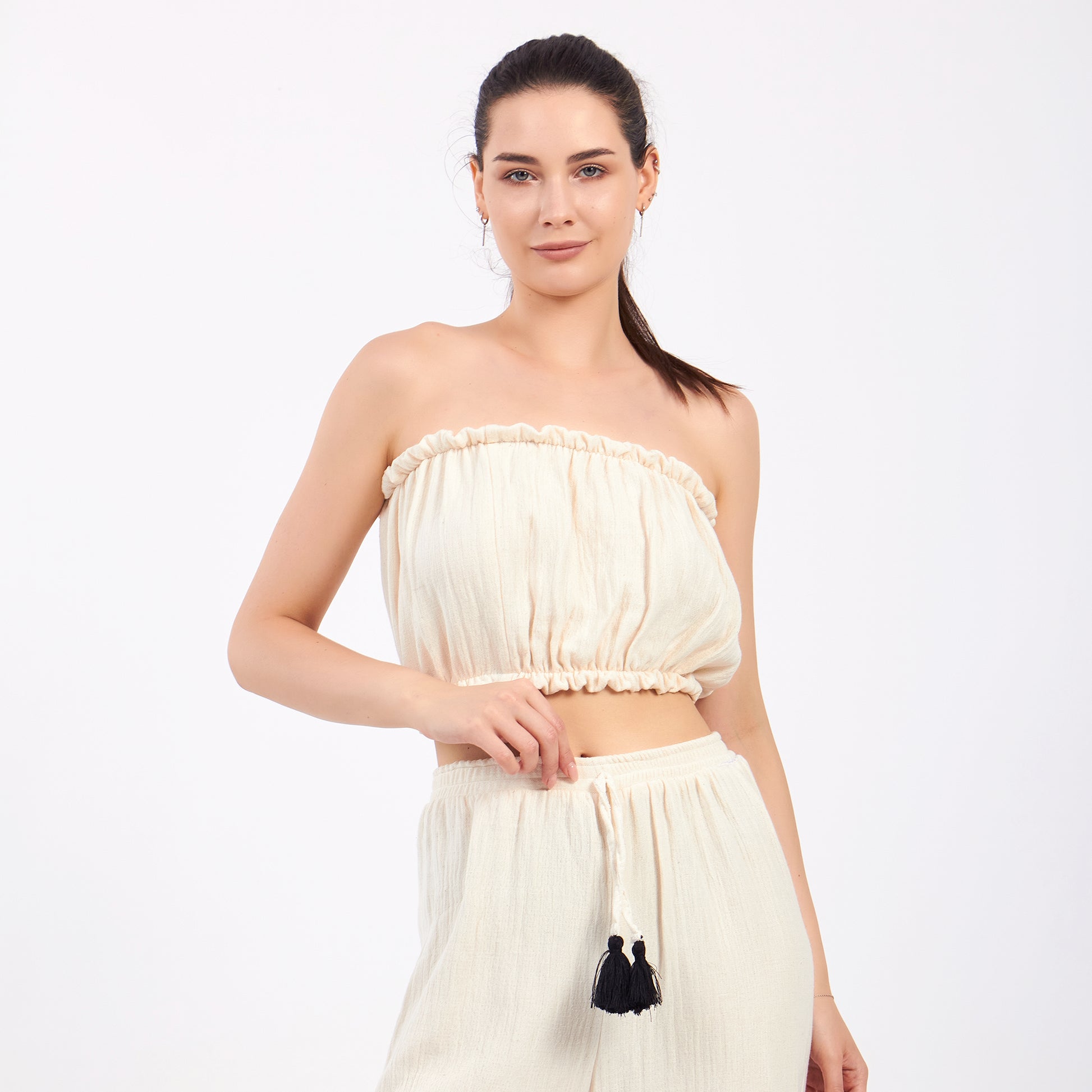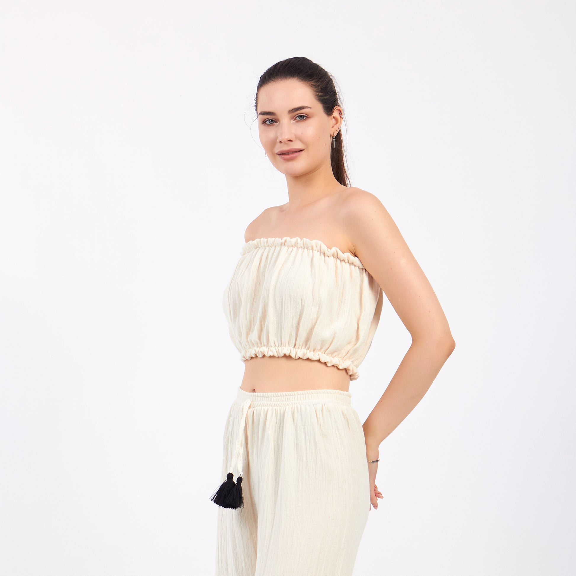 Natural Cotton Bustier Blouse Pants Set is made by legendary traditional Anatolian hand-woven technique.