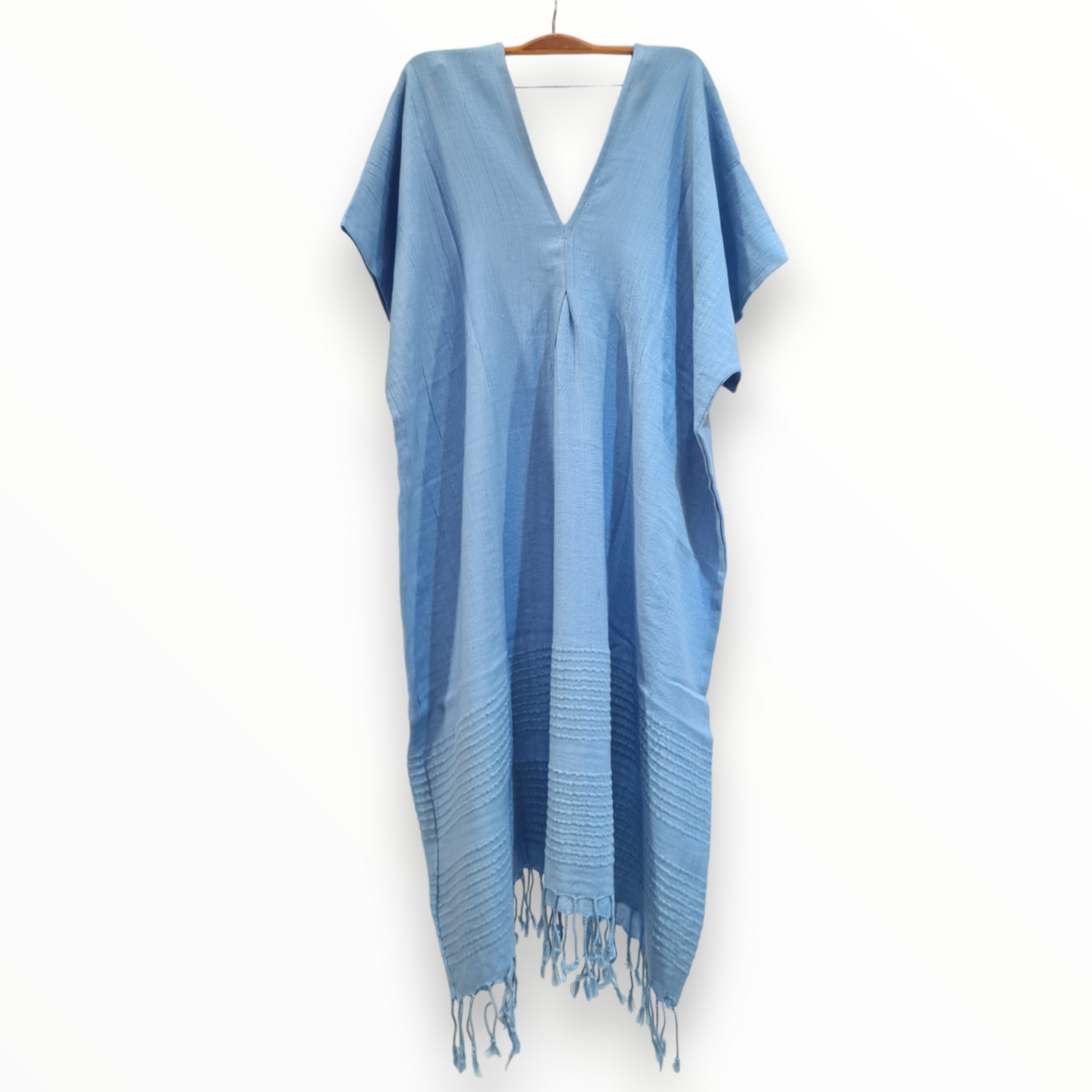 Natural Cotton Bamboo Hand-Made Dress has been stone washed.