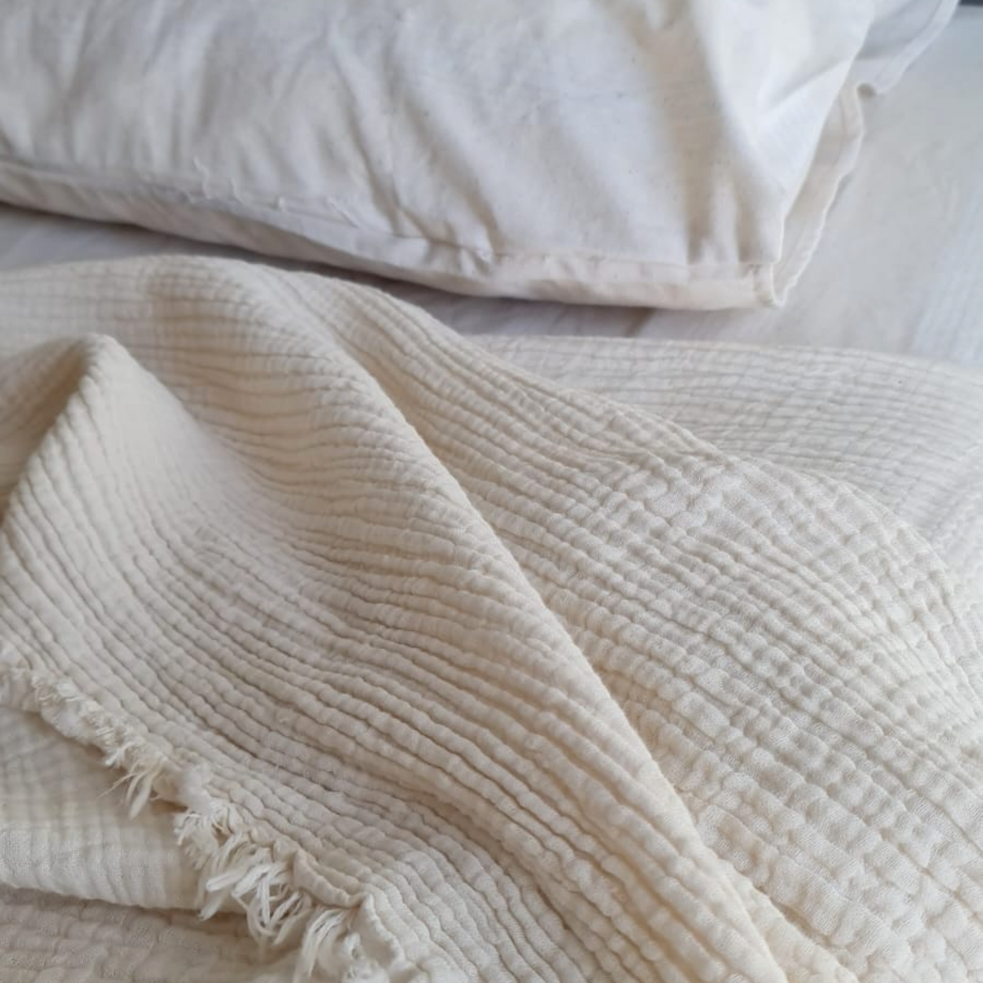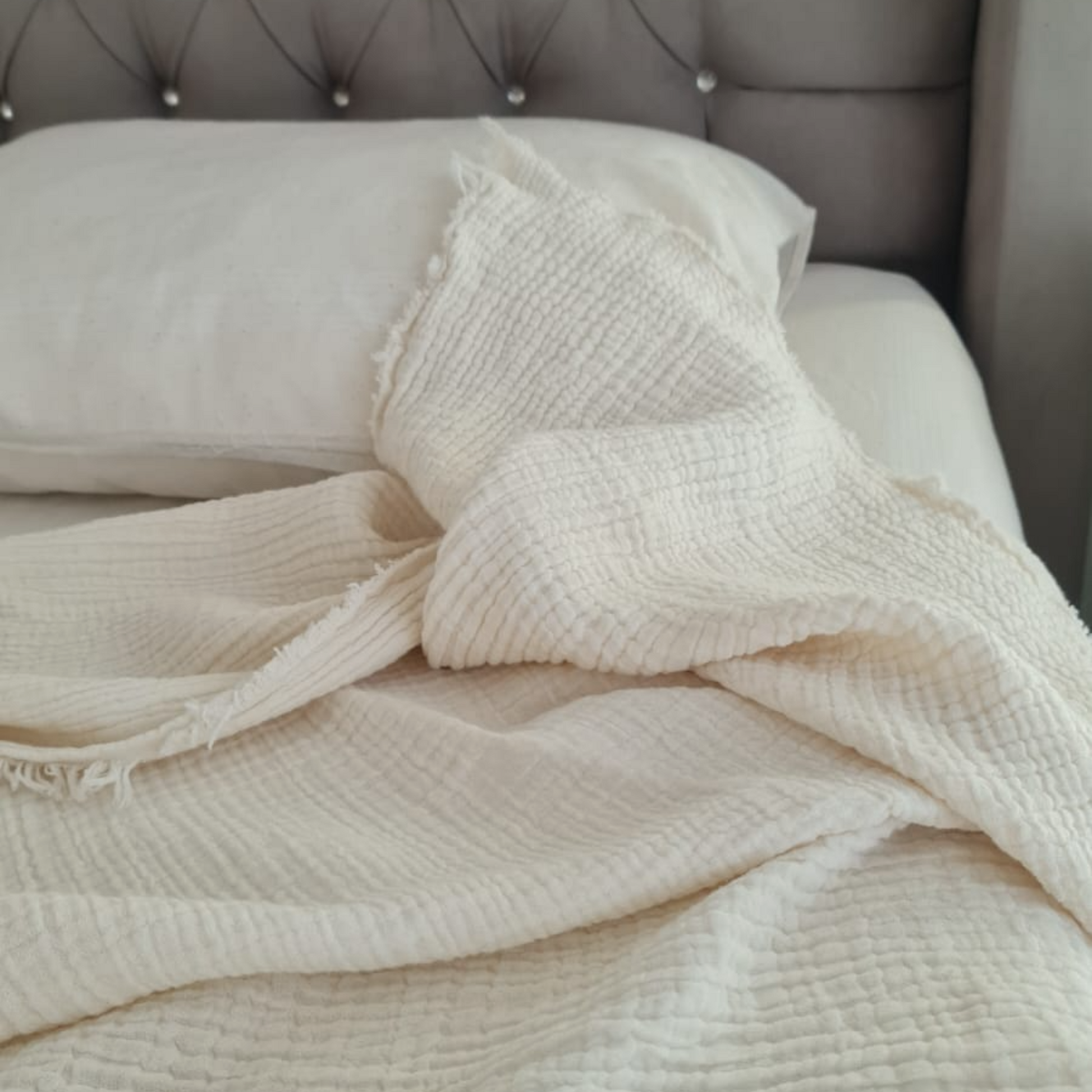 Natural Cotton Hand Woven Muslin Blanket - King Size Gauze Bed Cover