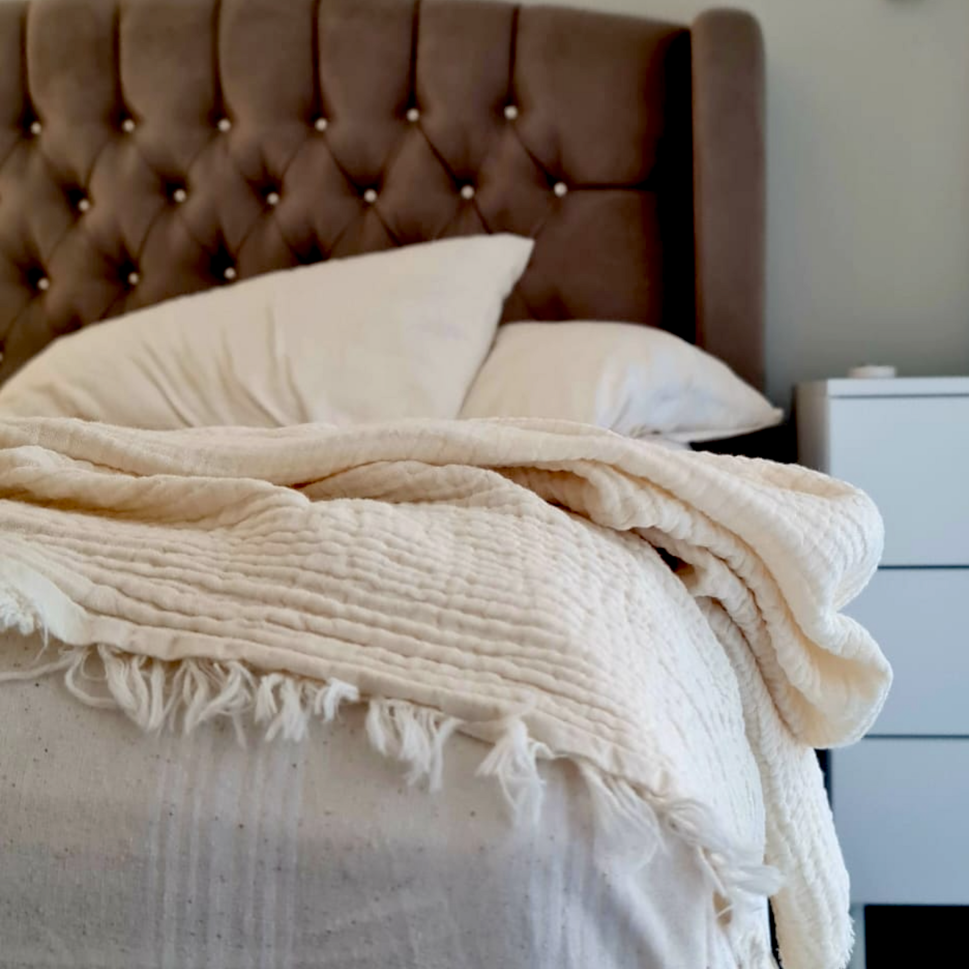 Transform your sleep experience with the Natural Cotton Hand Woven Muslin Blanket - a blend of luxury, comfort, and handcrafted artistry.