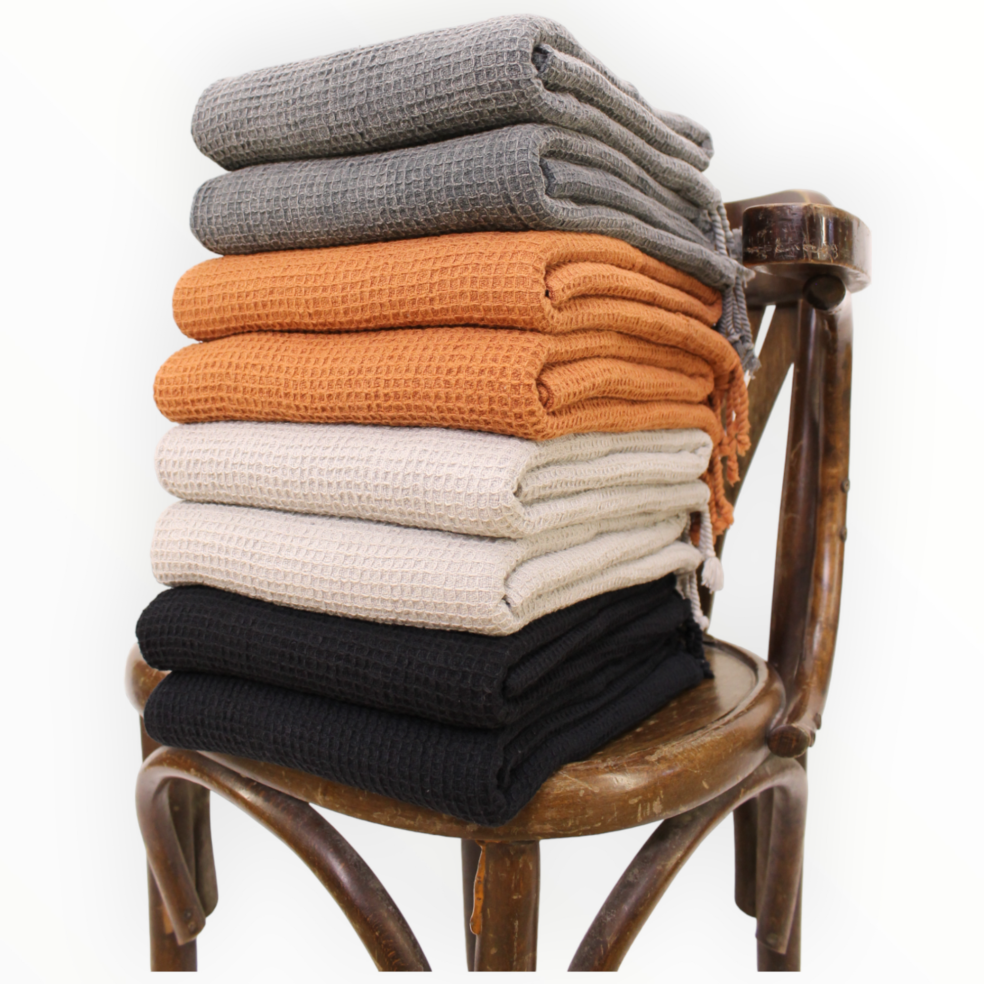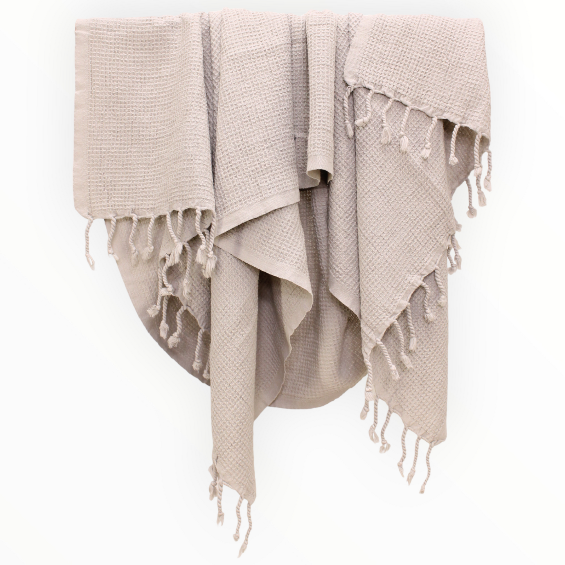 Natural Cotton Hand-Woven Stone Washed Waffle Turkish Towel