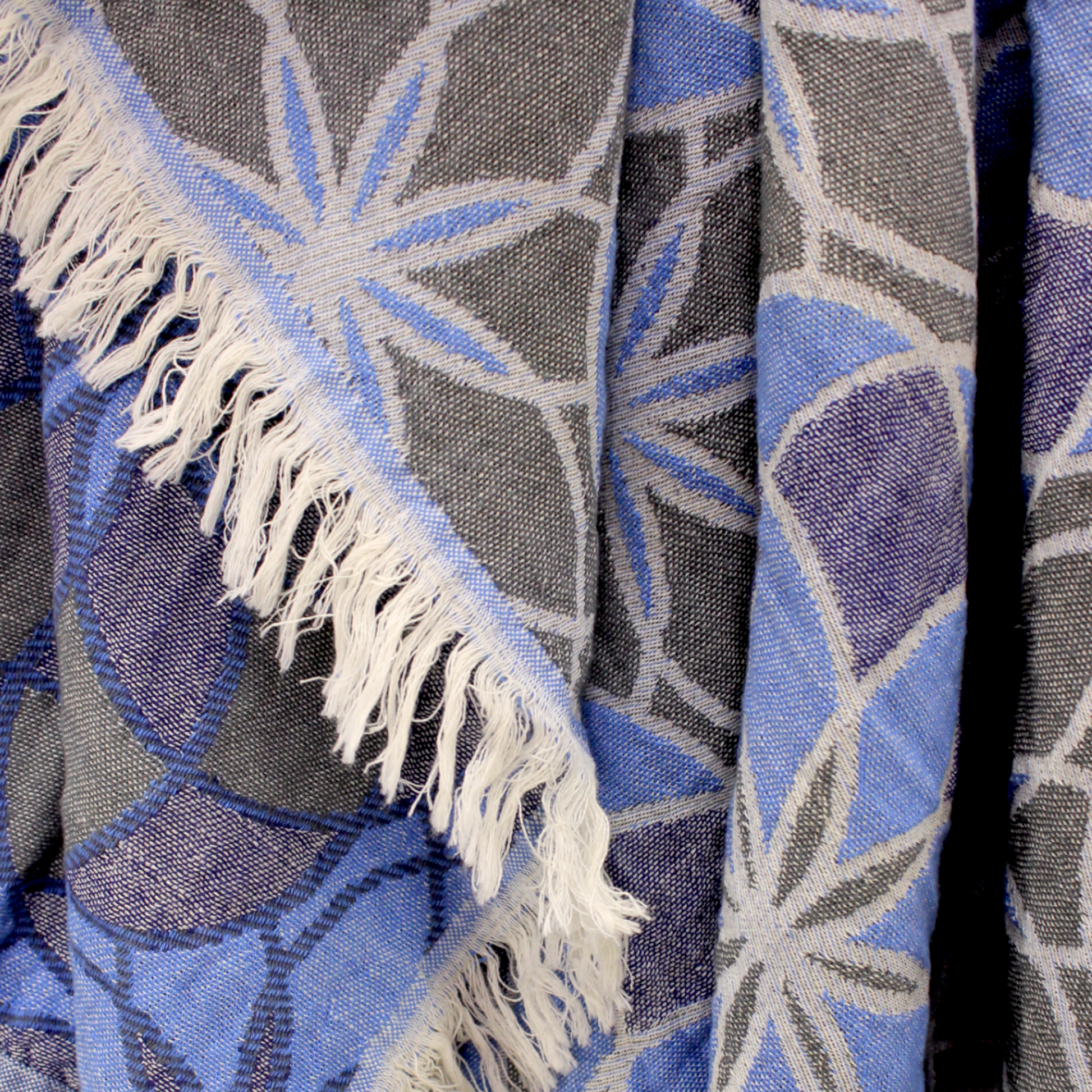 Due to its traditional jacquard looming technique, it has a double site with different double colours.