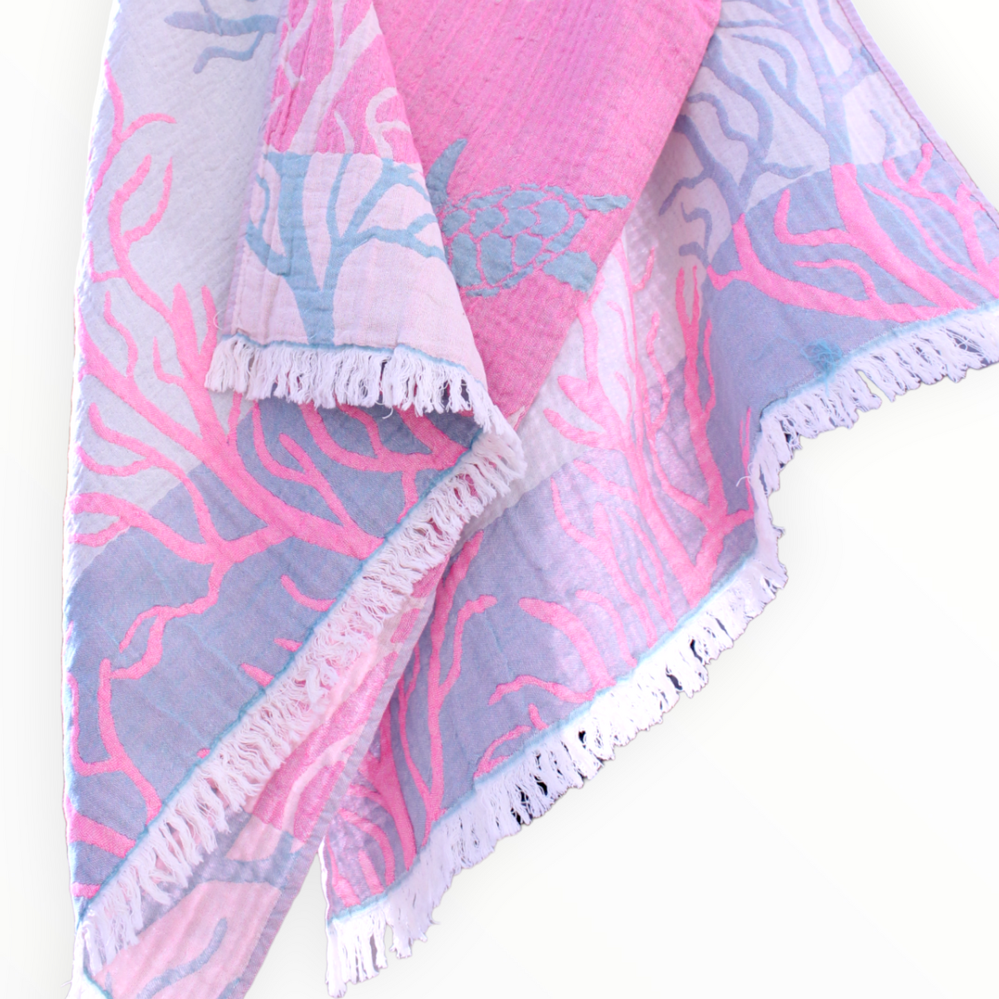 A multipurpose traditional flat-woven Pestemal Turkish Towel has its origins in the Hamam – a traditional Ottoman public bath in Turkey. They are famous for their absorbency and hygienic soft texture.