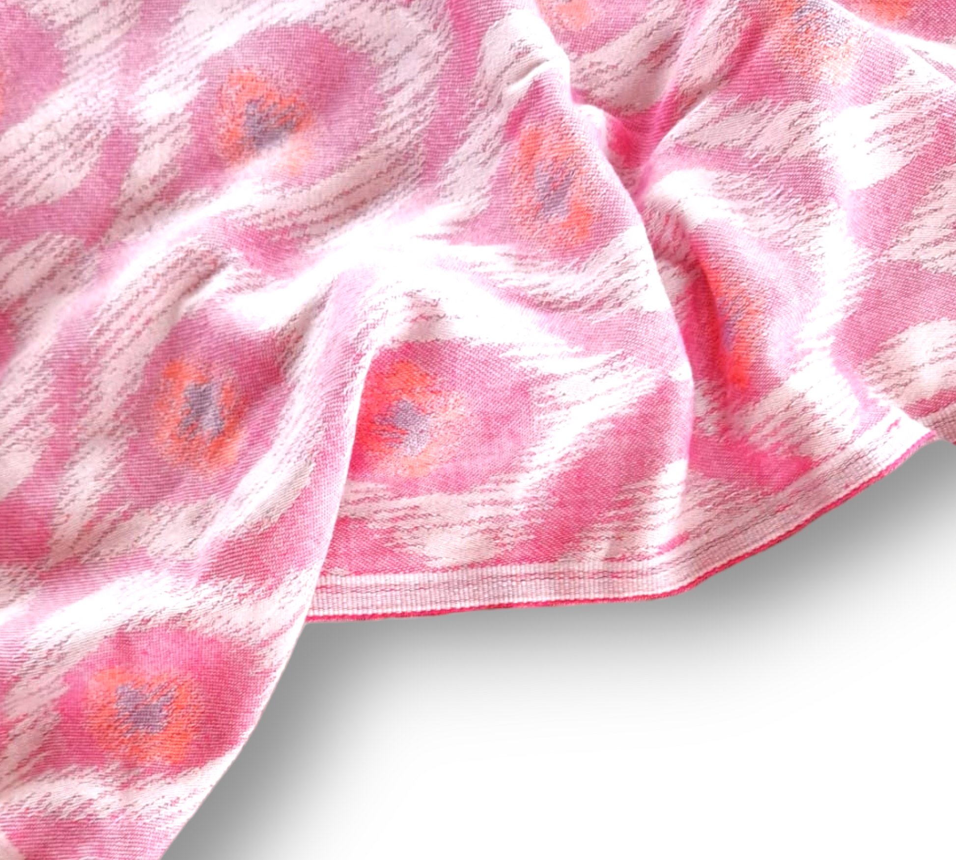 Due to its traditional jacquard looming technique, it has a double site with different double colours.