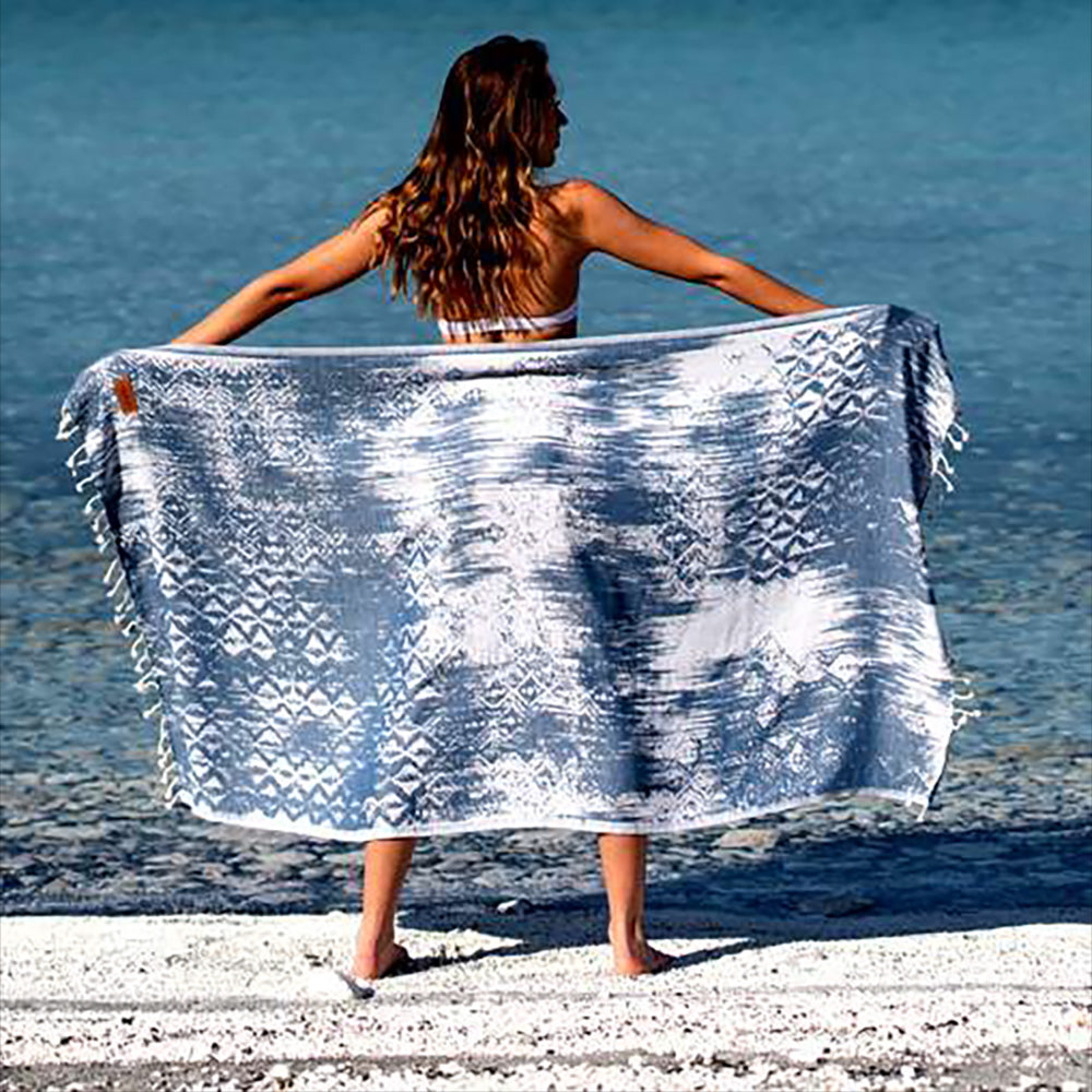 These highly absorbent Jacquard Design Natural Cotton Turkish Towel Pestemal Indigo dry quickly and are naturally sand resistant.
