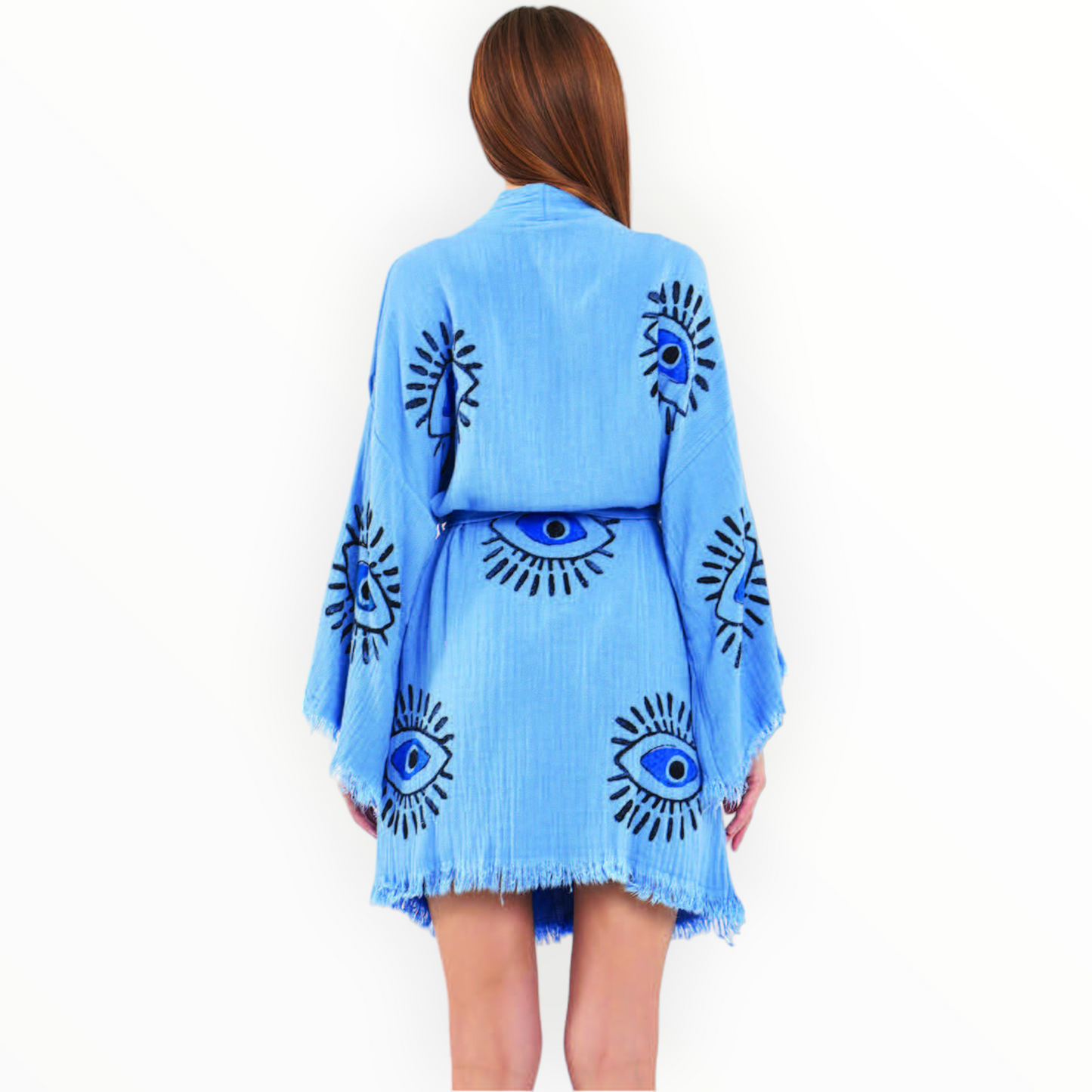 Natural Turkish Cotton Handmade Evil Eye Kimono Robe
