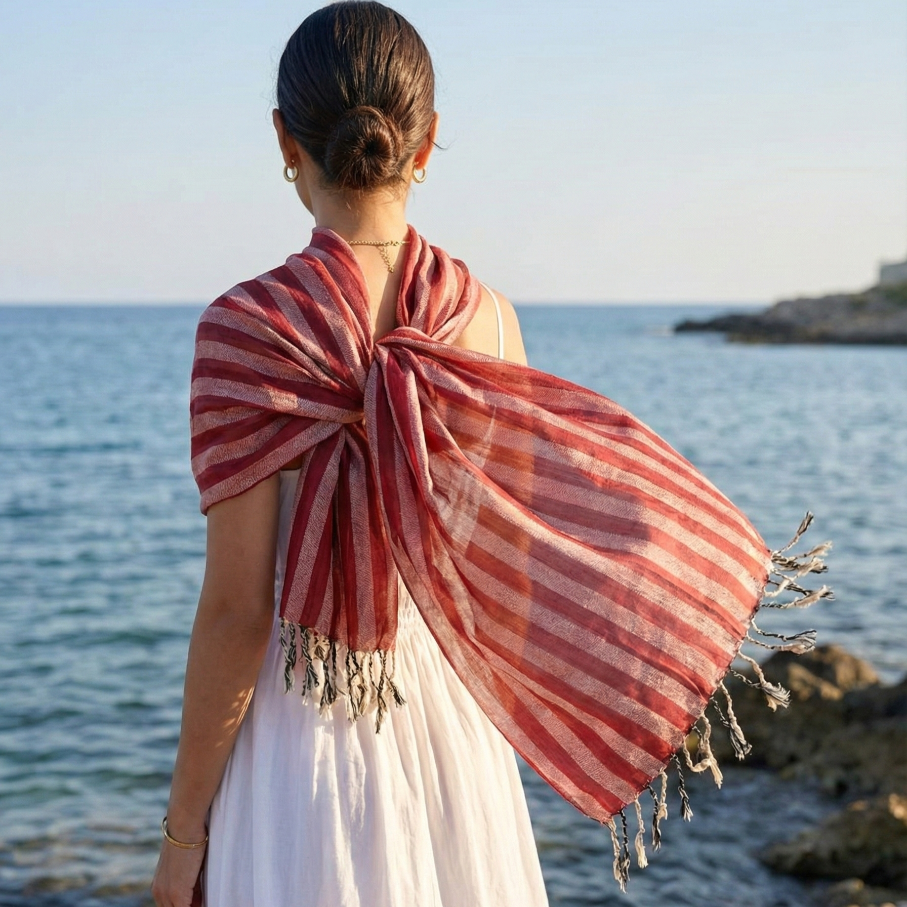 Elevate your everyday style with our handwoven Anatolian silk scarf, a timeless accessory created through centuries-old silk weaving traditions. Produced in very limited quantities, this delicate piece is not just an accessory; it is wearable heritage.