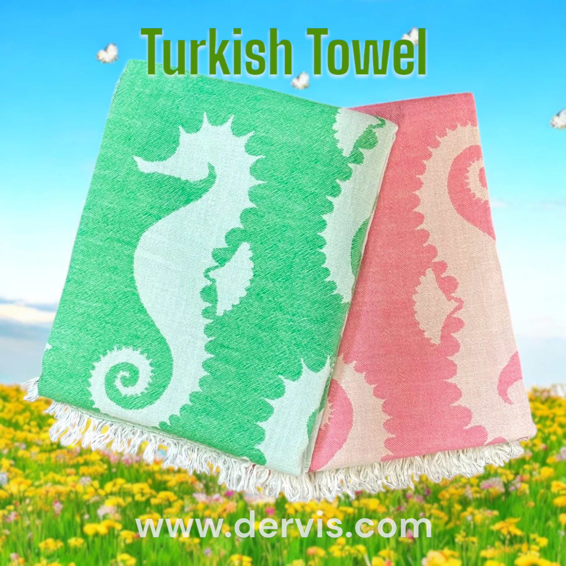 🌊 Seahorse Pattern Turkish Towel - Pestemal 🌊