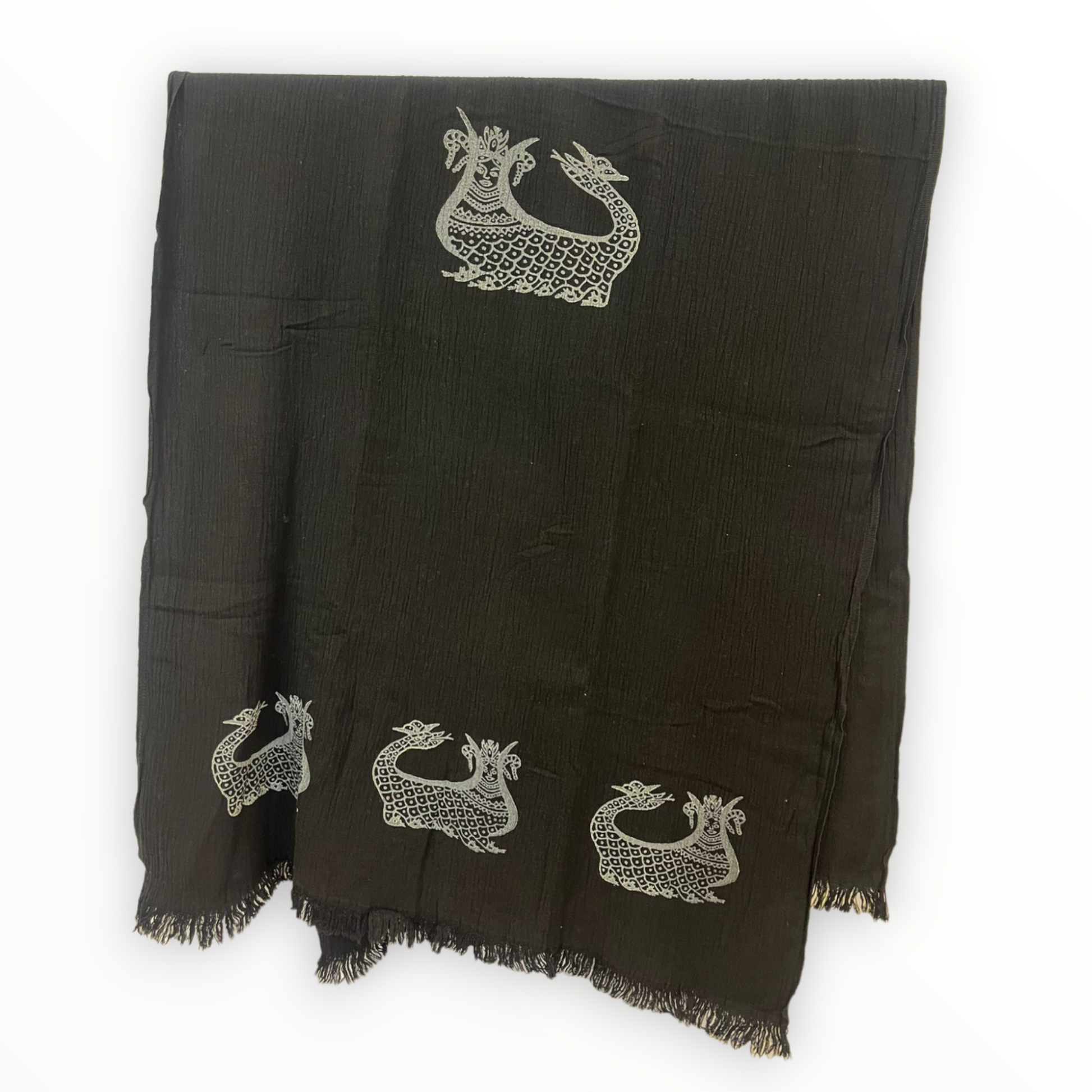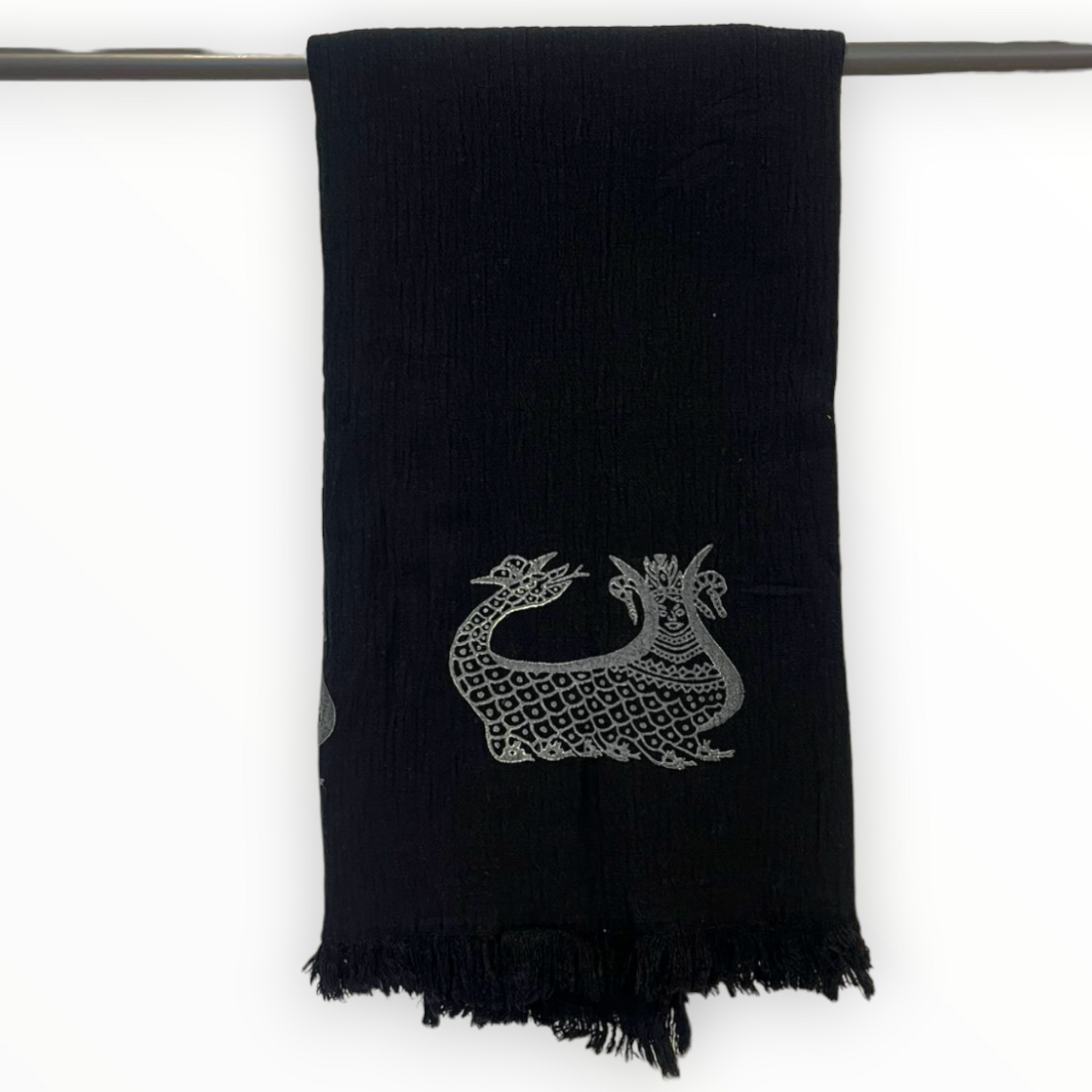 Shahmaran Turkish Towel Pestemal - Beach Towel is made of Double Layers Natural Cotton Muslin. All the Shahmaran patterns are Hand printed with Wood Stamps and Natural Dye.