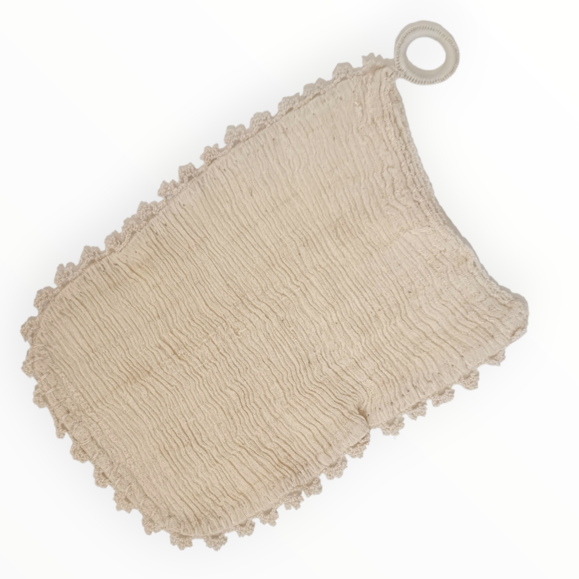 Our Handwoven Silk Fabric Exfoliator Mitt brings you the ancient secrets of the Turkish spa ritual, delivering gentle exfoliation for irresistibly smooth and radiant skin. The unique texture of the handcrafted silk fabric ensures a pampering touch, leaving your skin feeling renewed and rejuvenated.