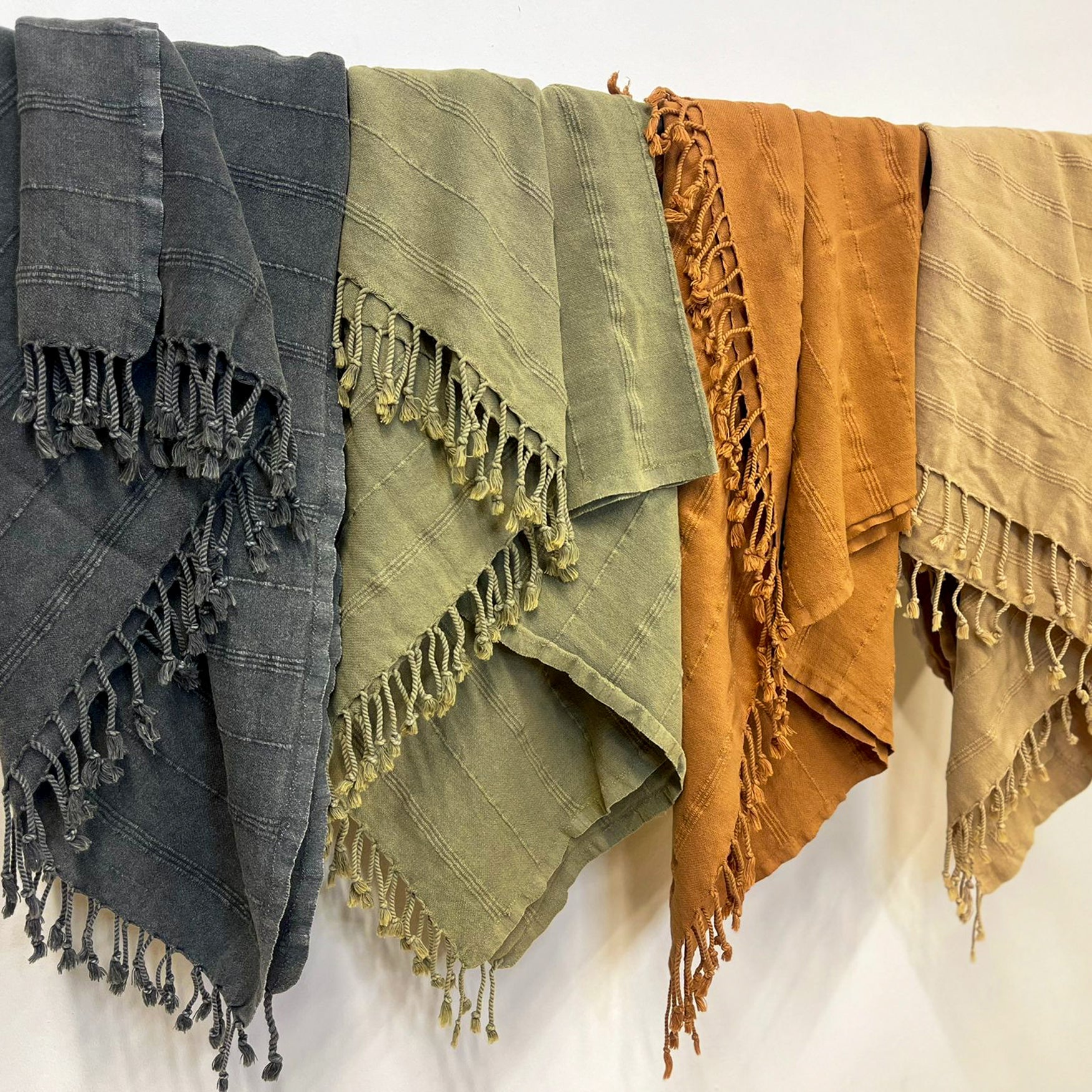 Stone Washed Turkish Towel Pestemal Natural Cotton