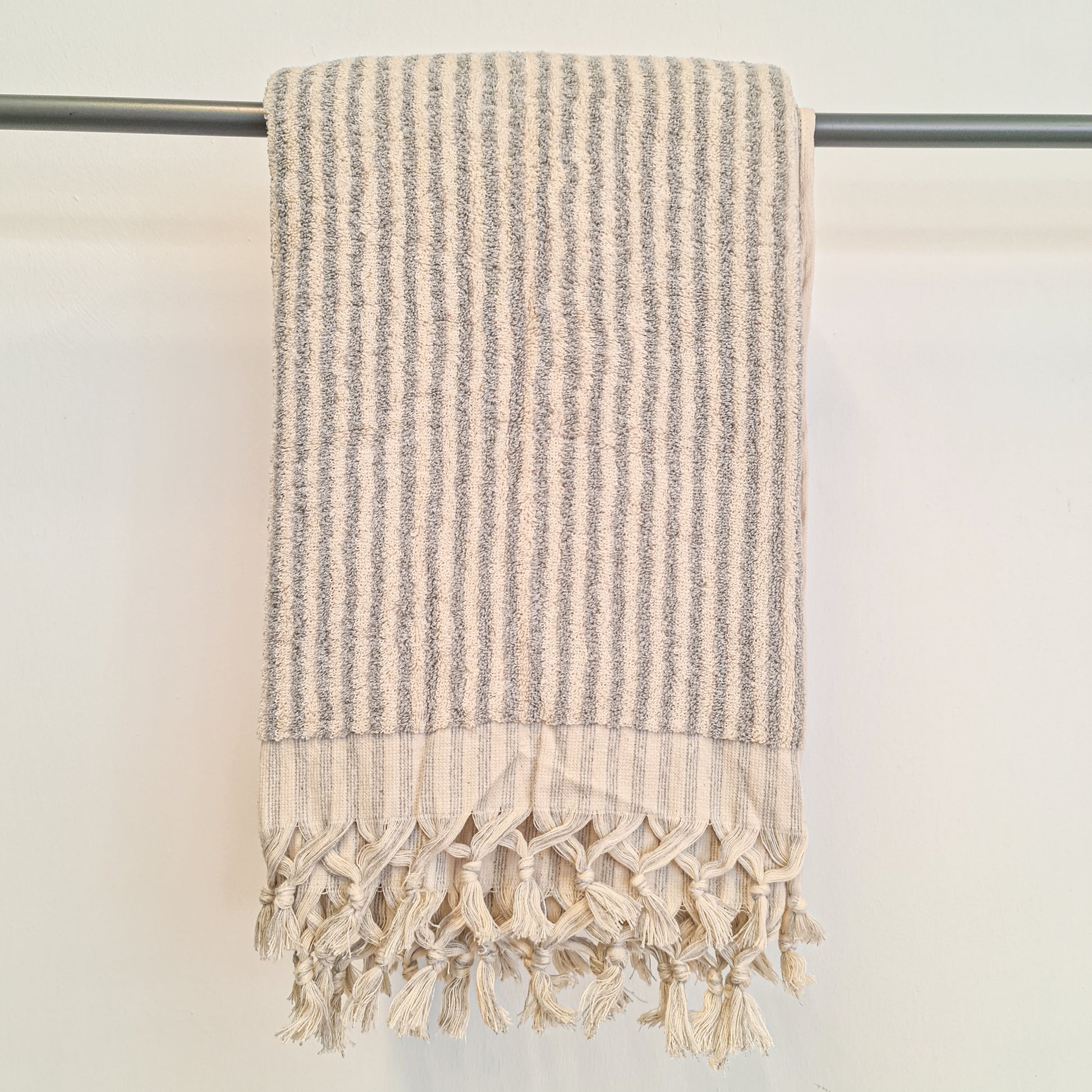 Turkish Hammam Bath Terry Towels Grey Stripe