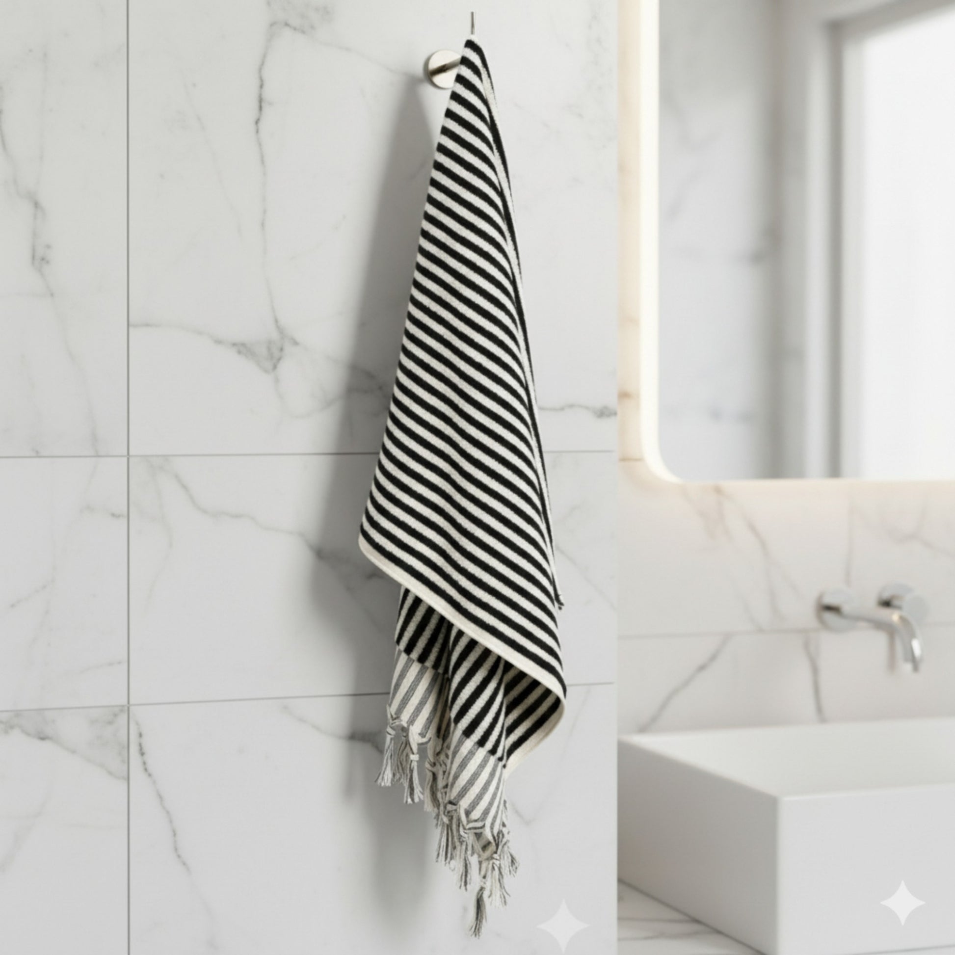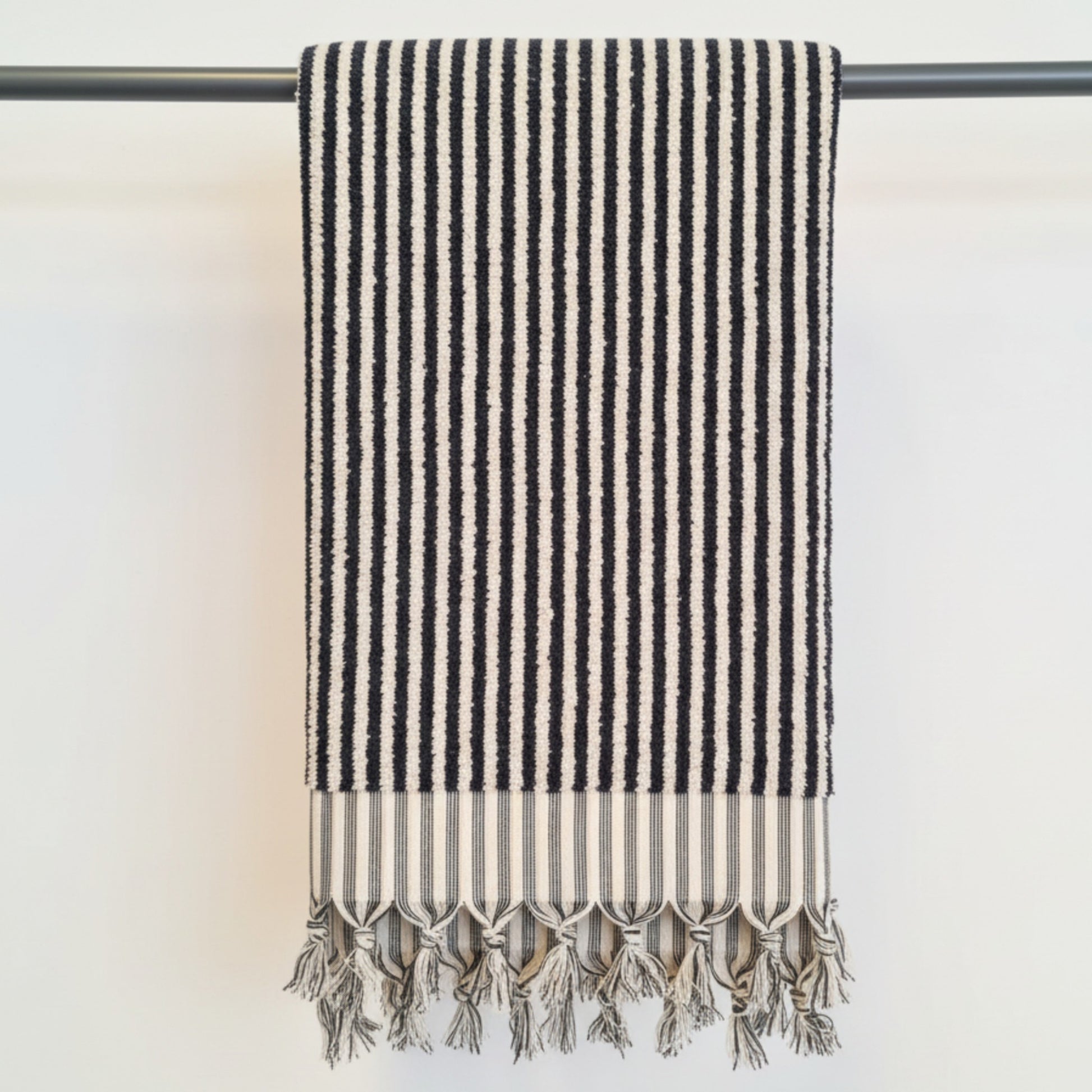 Turkish Hammam Bath Terry Hand Towels – Black White Stripe
