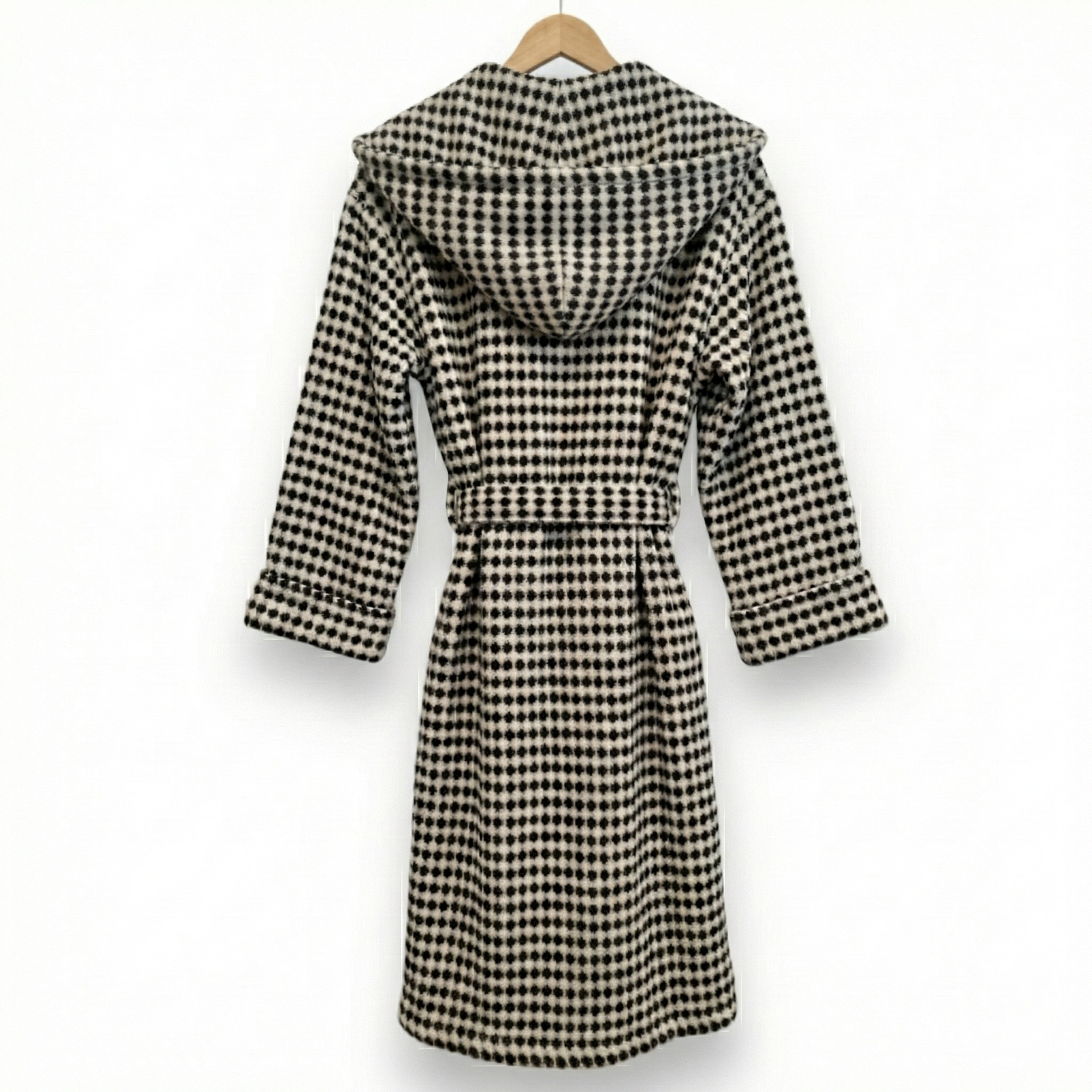 Turkish Terry Towel Unisex Bathrobe Black White Dotted Pompom Design Hooded