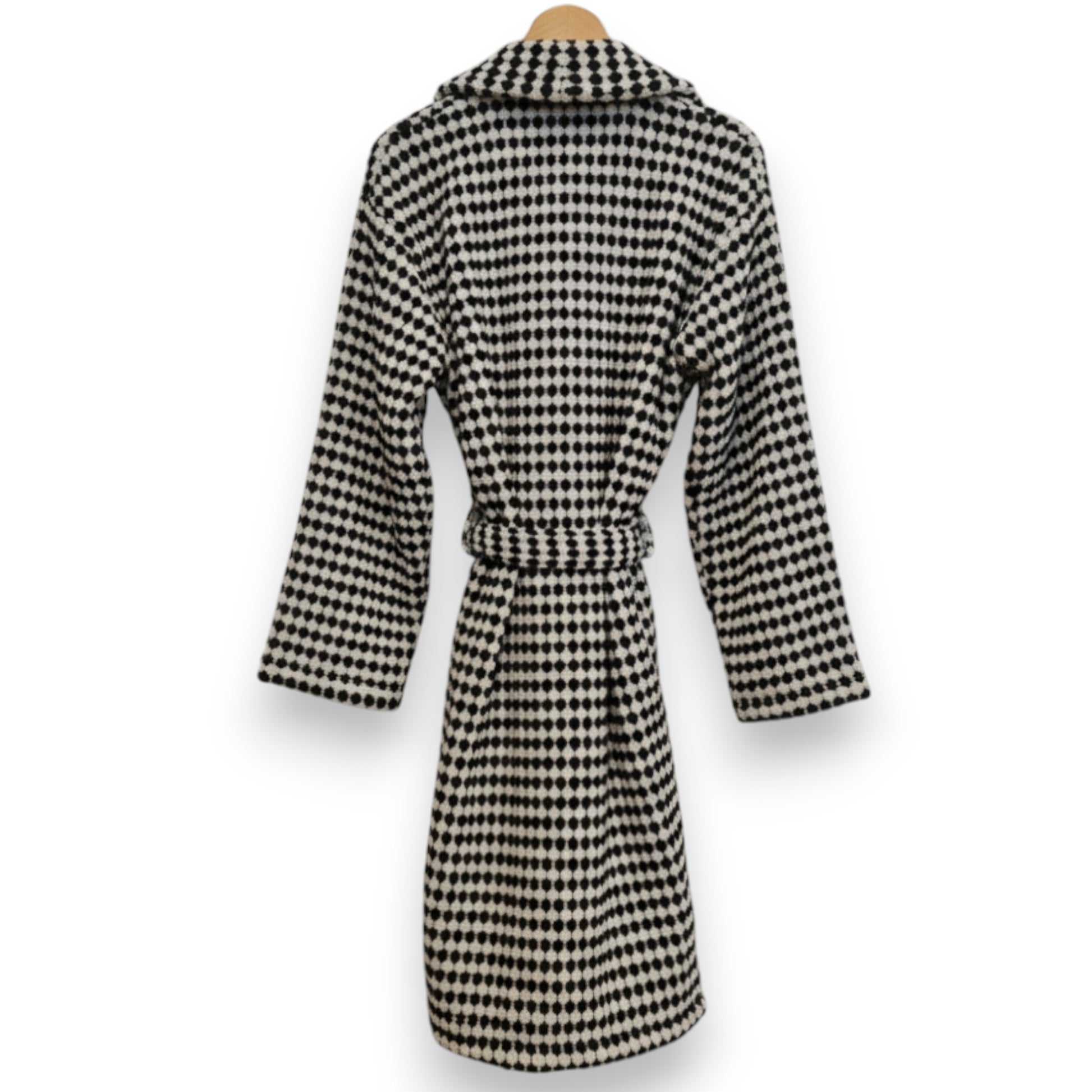 Turkish Terry Towel Unisex Bathrobe Black White Dotted Pompom Design Shawl Collar