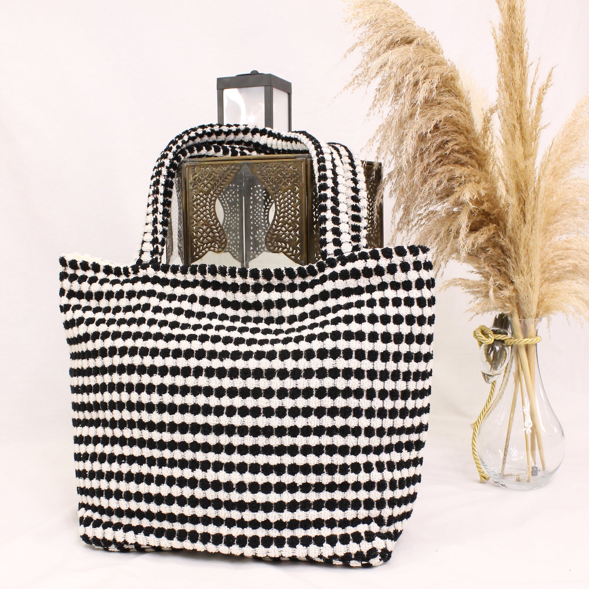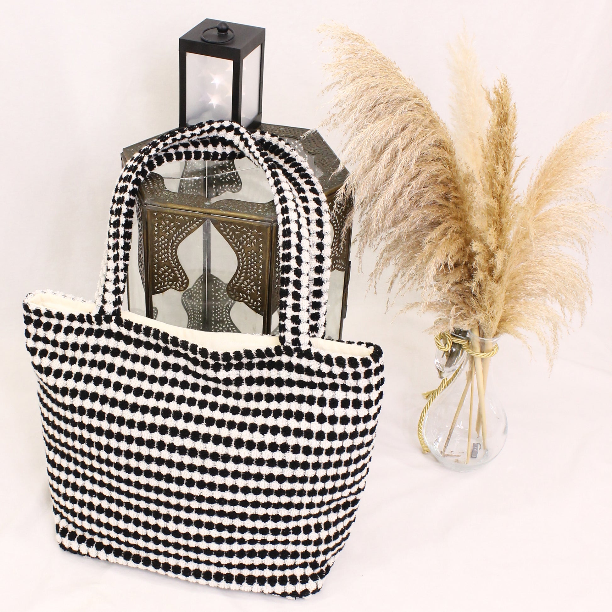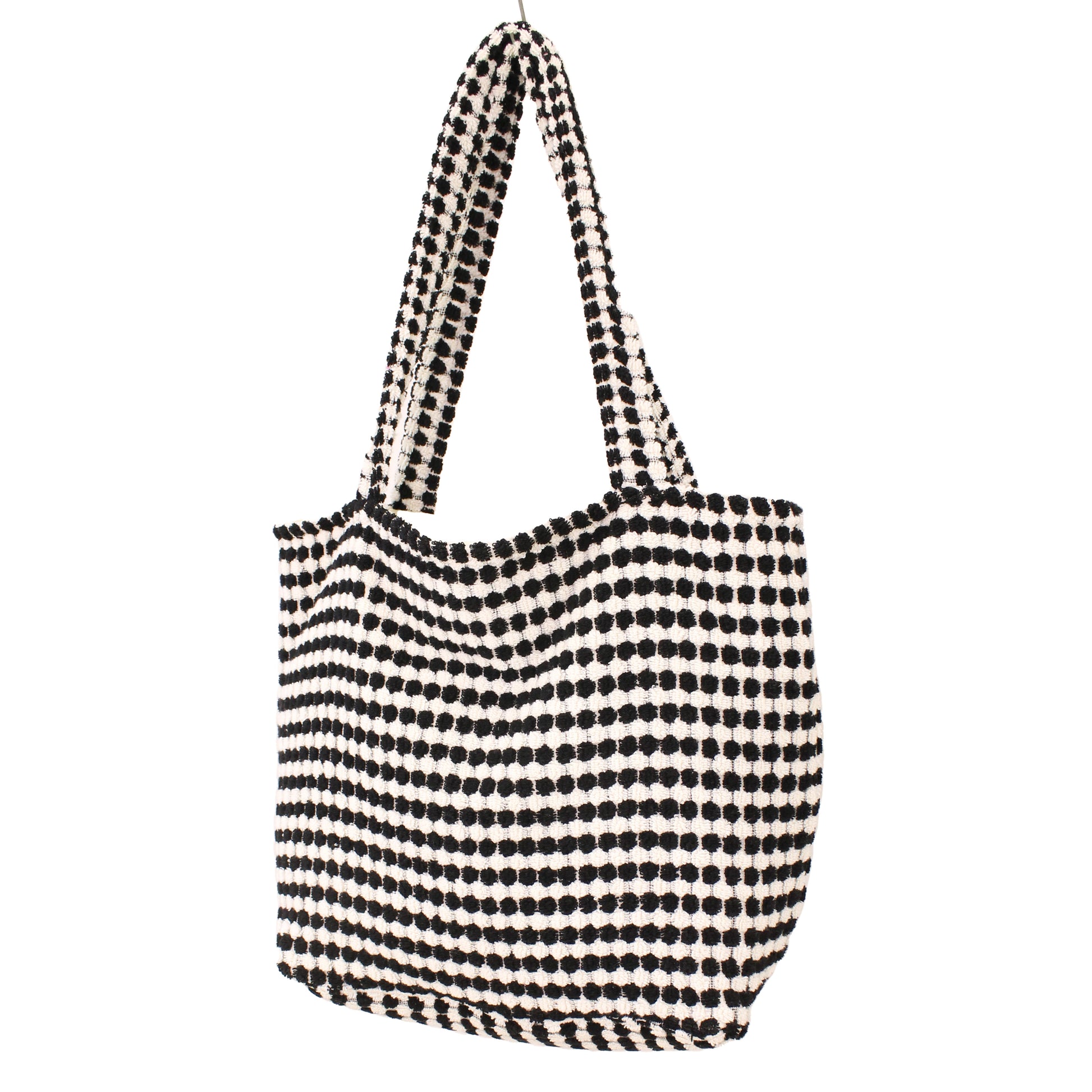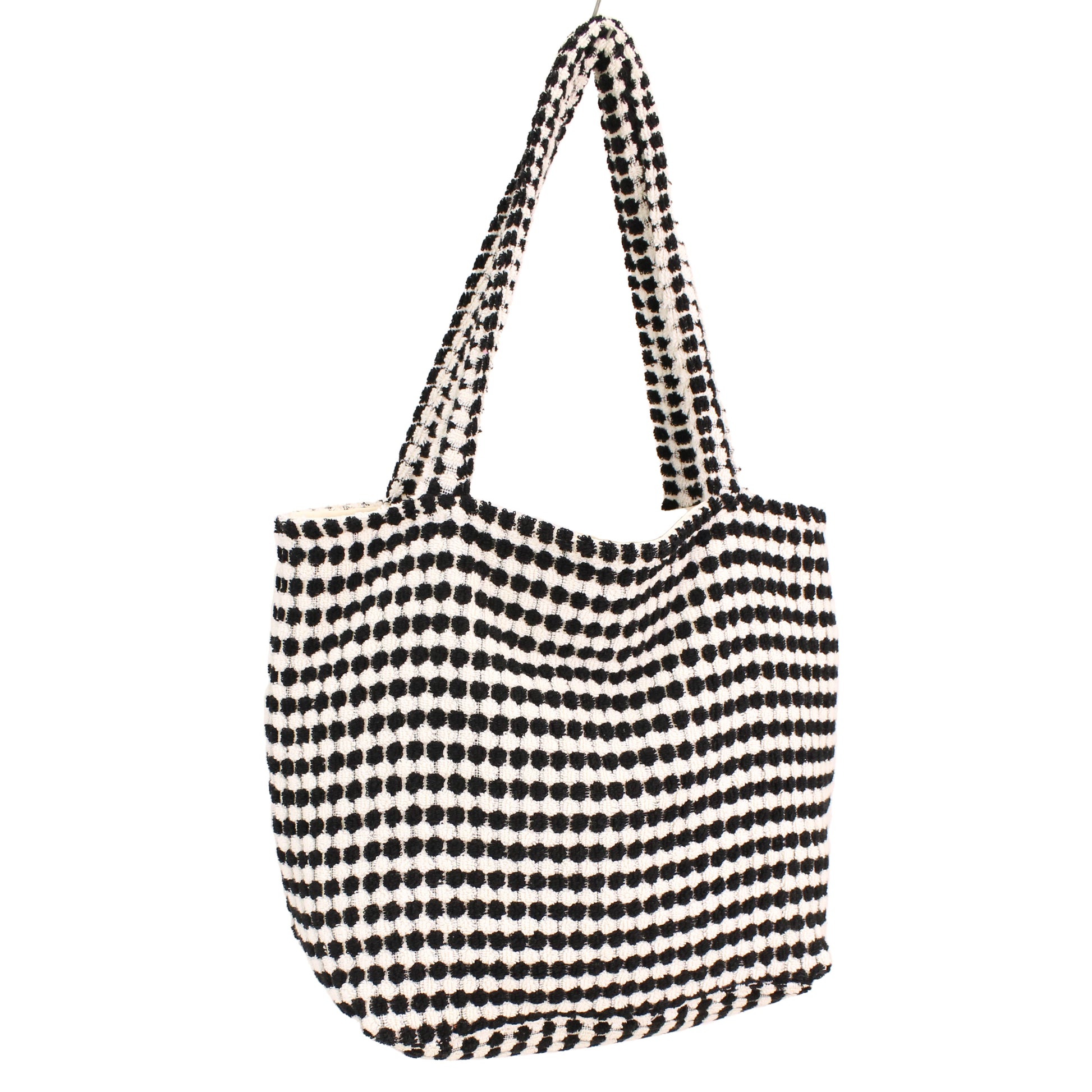 This Turkish Terry Towel Shopping Bag & Beach Bag has a modern Black Dotted design.