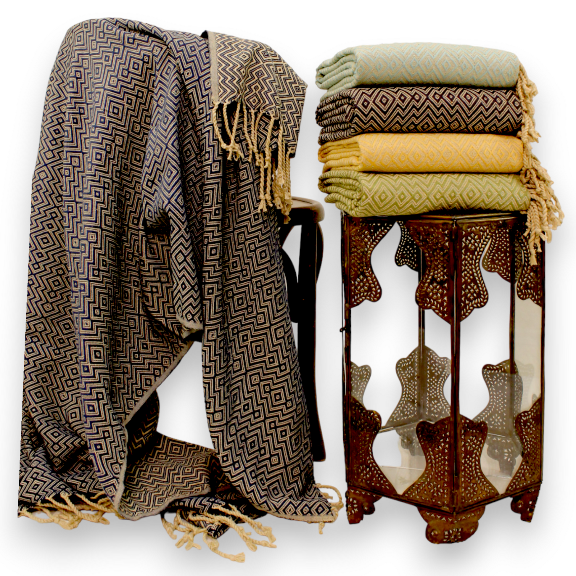 This pure cotton Turkish Towel Pestemal - Beach Blanket has traditional Jacquard Patterns.