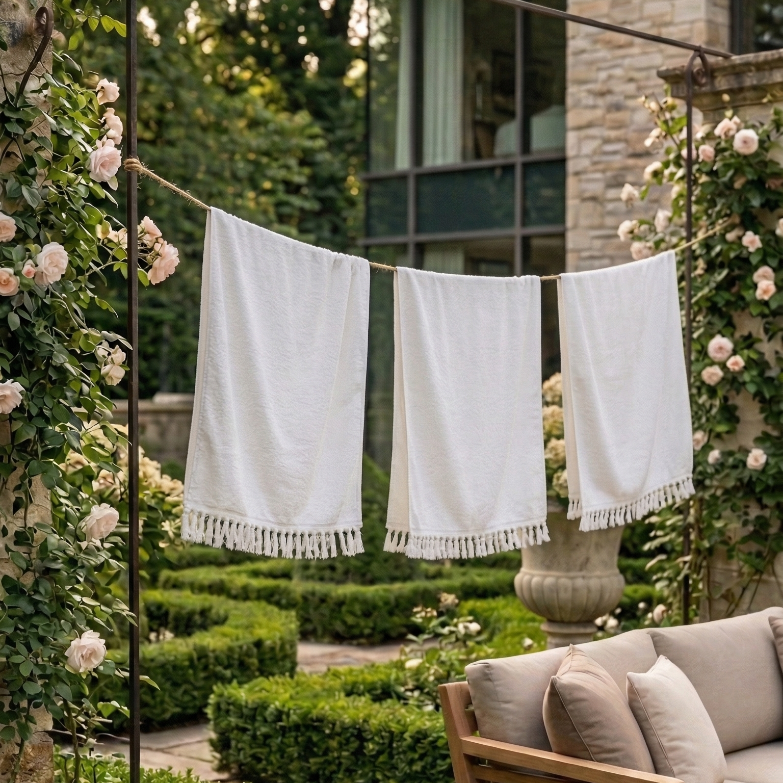 - Texture: Soft Terry with Hand-Tied Tassels